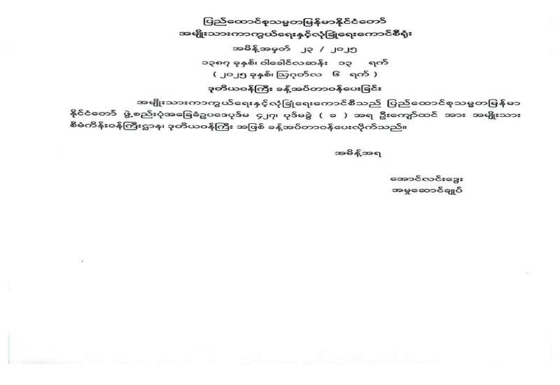 ရန်ကုန်မြို့နှင့် မန္တလေးမြို့အတွက် ရည်ညွှန်းလက်ကားဈေးနှုန်းများနှင့် ပြည်ထောင်စုနယ်မြေ နေပြည်တော်၊ တိုင်းဒေသကြီး/ပြည်နယ် မြို့တော်များအတွက် ရည်ညွှန်းလက်လီဈေးနှုန်းများ