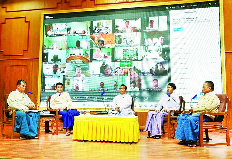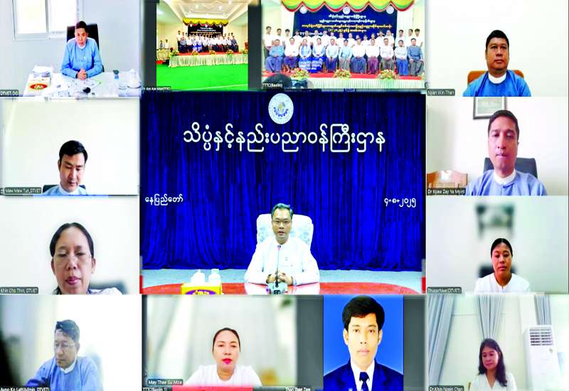 တက္ကသိုလ်များတွင် သုတေသနလုပ်ငန်းများ တွန်းအားပေးဆောင်ရွက်ကြရန် ပညာရေးဝန်ကြီးဌာန ပြည်ထောင်စုဝန်ကြီး ဒေါက်တာချောချောစိန်က ယနေ့တွင် ဒုတိယဝန်ကြီး ဒေါက်တာဇော်မြင့်နှင့် ဦးနေမျိုးလှိုင်၊ တာဝန်ရှိသူများနှင့်အတူ တက္ကသိုလ်၊ ဒီဂရီကောလိပ်များမှ ပါမောက္ခချုပ်များ၊ ကျောင်းအုပ်ကြီးများ၊ ဒုတိယပါမောက္ခချုပ်များ၊ ပါမောက္ခများ၊ တိုင်းဒေသကြီးနှင့် ပြည်နယ်ပညာရေးမှူးများနှင့် အွန်လိုင်းစနစ်ဖြင့် တွေ့ဆုံစဉ် ဆွေးနွေးပြောကြားသည်။