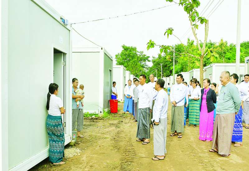 လူမှုဝန်ထမ်း၊ ကယ်ဆယ်ရေးနှင့်ပြန်လည်နေရာ ချထားရေးဝန်ကြီးဌာန ပြည်ထောင်စုဝန်ကြီး ဒေါက်တာစိုးဝင်းသည် တာဝန်ရှိသူများနှင့်အတူ ယမန်နေ့က ရုံးအမှတ်(၂၃)ဝင်းအတွင်း၌ ဝန်ထမ်းများ ယာယီနေထိုင်ရန် အမျိုးသားသဘာဝဘေး အန္တရာယ်ဆိုင်ရာစီမံခန့်ခွဲမှုကော်မတီက ခွဲဝေချထားပေးသော Container House များတွင် နေထိုင်သည့် ဝန်ထမ်းများအား တွေ့ဆုံအားပေးစကားပြောကြားသည်။