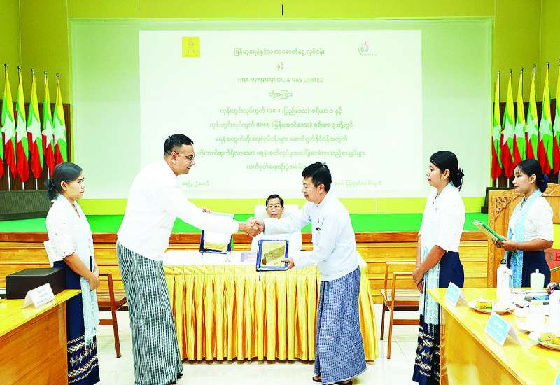စွမ်းအင်ဝန်ကြီးဌာန၊ မြန်မာ့ရေနံနှင့်သဘာဝဓာတ်ငွေ့ လုပ်ငန်းနှင့် HNA Myanmar Oil & Gas Ltd. တို့အကြား ကုန်းတွင်းလုပ်ကွက် IOR-4 (ပြည်ဒေသ) ဧရိယာ - ၁ နှင့် IOR-6 (မြန်အောင်ဒေသ) ဧရိယာ- ၃ တို့အတွက်လည်းကောင်း၊ မြန်မာ့ရေနံနှင့်သဘာဝဓာတ်ငွေ့လုပ်ငန်းနှင့် Future Engineering & Gold, Mining Co., ltd. တို့အကြား IOR-7 (ရွှေပြည်သာဒေသ) ဧရိယာ - ၂ အတွက်လည်းကောင်း ရေနံအထွက်တိုးရေးလုပ်ငန်းများ ဆောင်ရွက်နိုင်ရန်အတွက် တိုးတက်ထွက်ရှိလာသော ရေနံနှင့်သဘာဝဓာတ်ငွေ့ထုတ်လုပ်မှုအပေါ် ခွဲဝေခံစားသည့်စာချုပ်များ လက်မှတ်ရေးထိုးပွဲအခမ်းအနားကို ယနေ့တွင် နေပြည်တော်ရှိ စွမ်းအင်ဝန်ကြီးဌာန၌ ကျင်းပသည်။