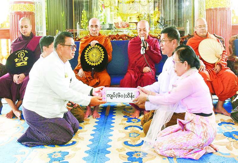 မင်းတုန်းမင်းတရားကြီး တည်ထားတော်မူခဲ့သည့် အောင်မြေသာစံမြို့နယ်ရှိ မဟာလောက မာရဇိန် ကုသိုလ်တော်မြတ်စွာဘုရား မဟာရံတံတိုင်းအတွင်းရှိ မန္တလေးငလျင်ကြီးကြောင့် ထိခိုက်ပြိုကျပျက်စီးခဲ့သည့် မုခ်ဦးနှင့်ကျောက်စာ ဓမ္မစေတီတော်များ ပြန်လည်ပြုပြင်မွမ်းမံရန် အလှူငွေပေးအပ်လှူဒါန်းပွဲအခမ်းအနားကို ယနေ့နံနက်ပိုင်းက အဆိုပါ မဟာလောကမာရဇိန် ကုသိုလ်တော်မြတ်စွာဘုရား၌ ကျင်းပသည်။