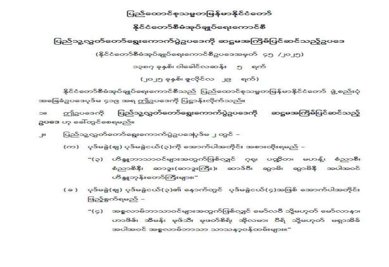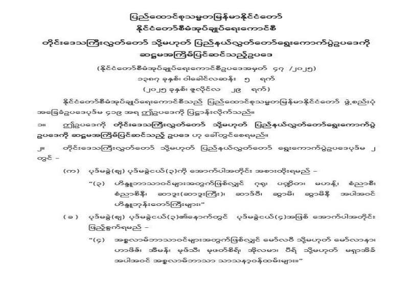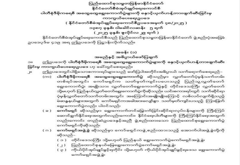 ရန်ကုန်မြို့နှင့် မန္တလေးမြို့အတွက် ရည်ညွှန်းလက်ကားဈေးနှုန်းများနှင့် ပြည်ထောင်စုနယ်မြေ နေပြည်တော်၊ တိုင်းဒေသကြီး/ပြည်နယ် မြို့တော်များအတွက် ရည်ညွှန်းလက်လီဈေးနှုန်းများ
