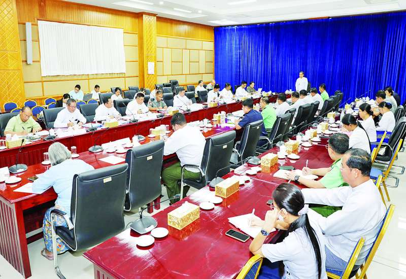 သမဝါယမဦးစီးဌာန၏ မိုးစပါးစိုက်ပျိုးရေးလုပ်ငန်းများ ဆောင်ရွက်ပြီးစီးမှုနှင့် ချေးငွေလုပ်ငန်းကြီးကြပ်မှုဗဟိုကော်မတီအစည်းအဝေးကို ယနေ့နံနက်ပိုင်းက သမဝါယမနှင့်ကျေးလက်ဖွံ့ဖြိုးရေးဝန်ကြီးဌာန ရုံးအမှတ် (၁၆) ၌ ကျင်းပရာ ပြည်ထောင်စုဝန်ကြီး ဦးလှမိုး၊ ဒုတိယဝန်ကြီး ဦးမြင့်စိုး၊ အမြဲတမ်းအတွင်းဝန်နှင့် တာဝန်ရှိသူများ တက်ရောက်ကြသည်။