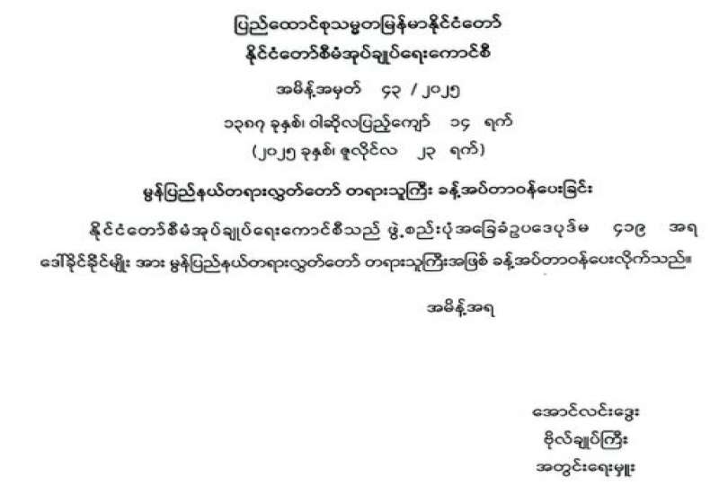 မွန်ပြည်နယ်တရားလွှတ်တော် တရားသူကြီး ခန့်အပ်တာဝန်ပေးခြင်း