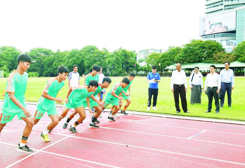 မြန်မာနိုင်ငံ အိုလံပစ်ကော်မတီဥက္ကဋ္ဌ အားကစားနှင့်လူငယ်ရေးရာဝန်ကြီးဌာန ပြည်ထောင်စုဝန်ကြီး Jeng Phang နော်တောင်သည် ယနေ့နံနက် ၈ နာရီတွင် ရန်ကုန်မြို့တာမွေမြို့နယ် ကျိုက္ကဆံကွင်းအတွင်းရှိ ဘောလုံးကွင်းအမှတ်(၁)၌ I.S.P.E FC အမျိုးသားဘောလုံးအသင်းနှင့် I.S.P.E FC အမျိုးသမီးဘောလုံးအသင်း အခြေခံကိုယ်လက်ကြံ့ခိုင်စွမ်းရည်ရှိစေရန် မီတာ ၈၀၀ အပြေး Training လေ့ကျင့်နေမှုကို ကြည့်ရှုစစ်ဆေးသည်။