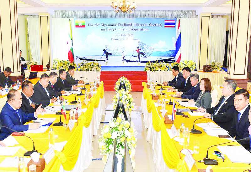 မြန်မာနိုင်ငံက အိမ်ရှင်အဖြစ် လက်ခံကျင်းပသော (၂၆) ကြိမ်မြောက် မြန်မာ-ထိုင်း နှစ်နိုင်ငံ မူးယစ်ဆေးဝါးပူးပေါင်းထိန်းချုပ်ရေးအစည်းအဝေးကို ယနေ့ နံနက် ၈ နာရီတွင် တောင်ကြီးမြို့ တောင်ကြီးဟိုတယ်၌ ကျင်းပသည်။