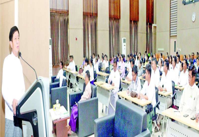 ပန်းတိုင်အထွက်နှုန်းရရှိရေး အထွက်နှုန်းကွာဟချက်များကို ဆန်းစစ်လေ့လာခြင်းဆိုင်ရာ မွမ်းမံသင်တန်းကို နေပြည်တော် ရေဆင်းရှိစိုက်ပျိုးပညာပေးရေးနှင့် ကျေးလက်ဒေသဖွံ့ဖြိုးရေးသင်တန်းကျောင်း (AERDTC)၌ ယမန်နေ့က စတင်ဖွင့်လှစ်လျက်ရှိရာ ယနေ့သင်တန်း ဒုတိယရက်တွင် စိုက်ပျိုးရေး၊ မွေးမြူရေးနှင့် ဆည်မြောင်းဝန်ကြီးဌာန ဒုတိယဝန်ကြီး ဒေါက်တာတင်ထွဋ်က ပါဝင်ပို့ချဆွေးနွေးသည်။