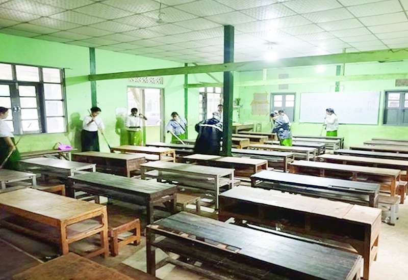 ၂၀၂၅-၂၀၂၆ ပညာသင်နှစ် ကျောင်းဖွင့်ရာသီတွင် ကျောင်းသား ကျောင်းသူများ အဆင်ပြေချောမွေ့စွာ ပညာသင်ကြားနိုင်ရေးနှင့် စာသင်ကျောင်းများ ဥပဓိရုပ်ကောင်းမွန်စေရေးအတွက် တိုင်းဒေသကြီးနှင့် ပြည်နယ်အသီးသီးရှိ အခြေခံပညာကျောင်းများနှင့် ပညာရေးဒီဂရီကောလိပ်များတွင် ကျောင်းပတ်ဝန်းကျင်သန့်ရှင်းသာယာလှပရေးအတွက် နယ်မြေခံတပ်မတော်သားများ၊ ဌာနဆိုင်ရာဝန်ထမ်းများ၊ လူမှုရေးအသင်းအဖွဲ့များနှင့် ဒေသခံပြည်သူများက စုပေါင်းသန့်ရှင်းရေးလုပ်ငန်းများ ဆောင်ရွက်ပေးလျက်ရှိသည်။