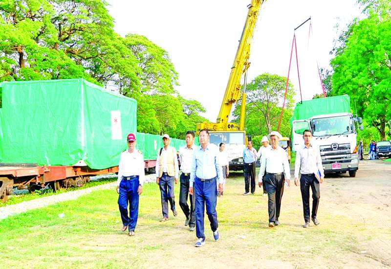 ဆောက်လုပ်ရေးဝန်ကြီးဌာန ဒုတိယဝန်ကြီး ဦးမျိုးမြင့်သည် လူမှုဝန်ထမ်း၊ ကယ်ဆယ်ရေးနှင့်ပြန်လည်နေရာချထားရေးဝန်ကြီးဌာန ဒုတိယဝန်ကြီး ဦးစိုးကြည်နှင့်အတူ ယနေ့မွန်းလွဲပိုင်းတွင် ရန်ကုန်မြို့ သီလဝါဆိပ်ကမ်းမှတစ်ဆင့် နေပြည်တော် ရွာတော်ဘူတာသို့ ထပ်မံရောက်ရှိလာသည့် Modular (Prefabricated) Office/House များကို သက်ဆိုင်ရာဝန်ကြီးဌာနများသို့ ဖြန့်ခွဲတပ်ဆင်တည်ဆောက်နေသည့်အခြေအနေကို သွားရောက်ကြည့်ရှုစစ်ဆေးသည်။