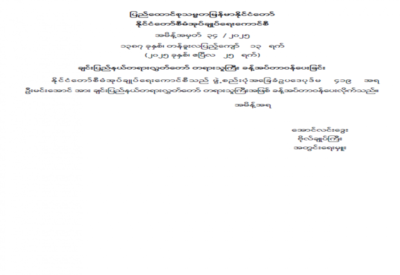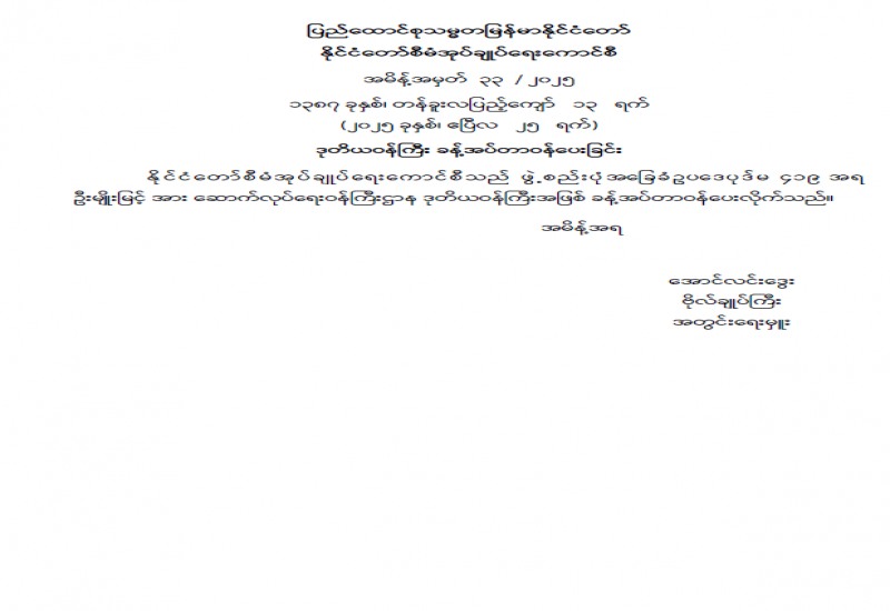 တနင်္သာရီတိုင်းဒေသကြီးမြေလွတ်၊ မြေလပ်နှင့်မြေရိုင်းများ စီမံခန့်ခွဲရေးကော်မတီ (၄/၂၀၂၅) ကြိမ်မြောက်နှင့် လယ်ယာမြေစီမံခန့်ခွဲမှုအဖွဲ့(၄ /၂၀၂၅)ကြိမ်မြောက်လုပ်ငန်း ညှိနှိုင်းအစည်းအဝေးကို ယနေ့မွန်းလွဲ ၁ နာရီ က ထားဝယ်မြို့၊ တိုင်းဒေသကြီးအစိုးရအဖွဲ့ရုံး၊ အစည်းအဝေးခန်းမ၌ ကျင်းပသည်။