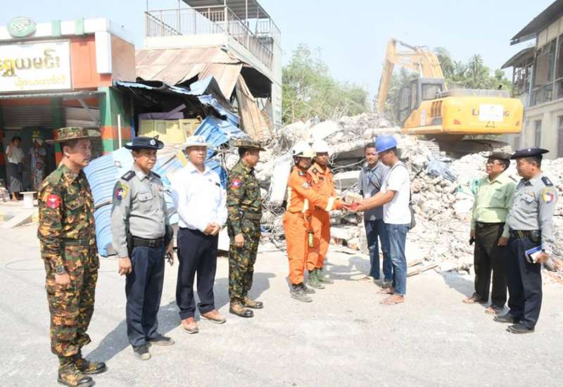 မြန်မာနိုင်ငံတွင် လှုပ်ခတ်ခဲ့သော မန္တလေးငလျင်ကြီးကြောင့် လမ်းတံတား၊ အဆောက်အအုံများ ထိခိုက်ပျက်စီးခဲ့ရသည့်နေရာများ၌ ကူညီကယ်ဆယ်ရေးနှင့် ပြန်လည်ထူထောင်ရေးလုပ်ငန်းများကို တိုင်းစစ်ဌာနချုပ်အသီးသီးမှ တပ်မတော်သားများ၊ မြန်မာနိုင်ငံရဲတပ်ဖွဲ့ဝင်များ၊ မီးသတ်တပ်ဖွဲ့ဝင်များ၊ ပြည်ပနိုင်ငံများမှ ကူညီကယ်ဆယ်ရေးအဖွဲ့များ၊ ဌာနဆိုင်ရာဝန်ထမ်းများ၊ လူမှုကူညီရေးအသင်း/အဖွဲ့များနှင့် ဒေသခံပြည်သူများပူးပေါင်း၍ အချိန်နှင့်တစ်ပြေးညီ ကူညီဆောင်ရွက်ပေးလျက်ရှိသည်။