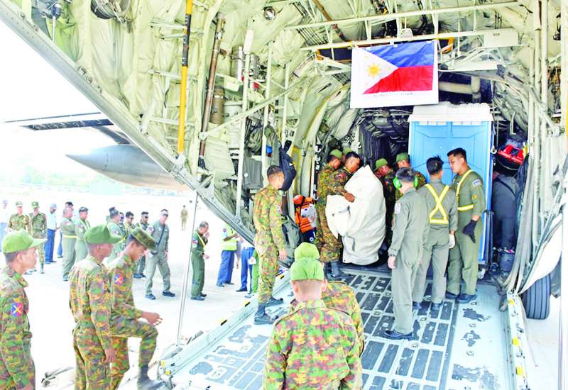 မတ် ၂၈ ရက်တွင် လှုပ်ခတ်ခဲ့သည့် မန္တလေးမြေငလျင်ကြီးကြောင့် နေပြည်တော်ကောင်စီနယ်မြေ၊ စစ်ကိုင်းတိုင်းဒေသကြီး၊ မန္တလေးတိုင်းဒေသကြီး၊ မကွေးတိုင်းဒေသကြီး၊ ရှမ်းပြည်နယ်နှင့် ပဲခူးတိုင်းဒေသကြီးတို့တွင် ပျက်စီးဆုံးရှုံးမှုများဖြစ်ပေါ်ခဲ့ရာ နိုင်ငံတော်အစိုးရအနေဖြင့် အလျင်အမြန်စုံစမ်းစစ်ဆေးခြင်း၊ ကူညီကယ်ဆယ်ရေး လုပ်ငန်းများကို အချိန်နှင့်တစ်ပြေးညီ ဆောင်ရွက်ခြင်းနှင့် ပြည်ပမှ လူသားချင်းစာနာထောက်ထားမှုဆိုင်ရာ အကူအညီများကို ဖိတ်ခေါ်လမ်းဖွင့်ပေးခြင်းများ ဆောင်ရွက်ခဲ့သည်။ ငလျင်ဒဏ်သင့်ပြည်သူများထံ နိုင်ငံတကာမှ ကူညီထောက်ပံ့သည့် လူသားချင်းစာနာထောက်ထားမှုဆိုင်ရာ အကူအညီပစ္စည်းများ၊ ဆေးဝါးများသည် မတ် ၂၉ ရက် ညပိုင်းမှ စတင်၍ ရန်ကုန်အပြည်ပြည် ဆိုင်ရာလေဆိပ်၊ နေပြည်တော်အပြည်ပြည်ဆိုင်ရာလေဆိပ်၊ မန္တလေးအပြည်ပြည်ဆိုင်ရာလေဆိပ်နှင့် ရန်ကုန်သီလဝါ ဆိပ်ကမ်းတို့သို့ ရောက်ရှိလာခဲ့သည်။
