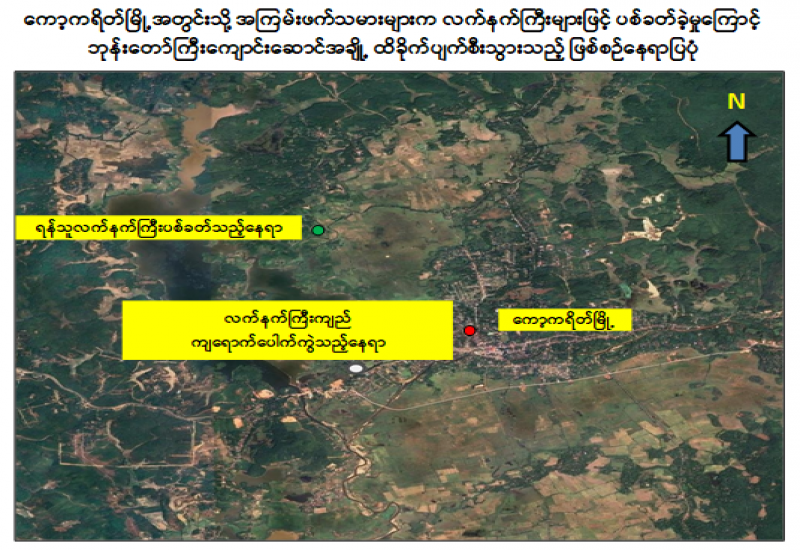 အကြမ်းဖက်သမားများအနေဖြင့် အများပြည်သူအထိတ်တလန့်ဖြစ်စေရန်နှင့် ထိခိုက်ပျက်စီးမှုများ ဖြစ်စေရန် ရည်ရွယ်၍ အကြမ်းဖက်မှုလုပ်ရပ်များကို လုပ်ဆောင် လျက်ရှိရာ ဧပြီ ၁၈ ရက် ညနေ ၄ နာရီ ၃၀ မိနစ်ခန့်တွင် ကရင်ပြည်နယ်၊ ကော့ကရိတ်မြို့နယ်အတွင်းသို့ PDF အမည်ခံ အကြမ်းဖက်သမားများနှင့် အကြမ်းဖက်မှုကိုလိုလားသည့် အဖွဲ့များက လက်နက်ကြီးဖြင့် ပစ်ခတ်ခဲ့ကြောင်း သိရှိရသည်။