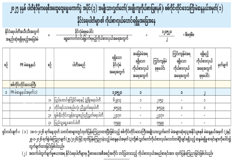 အမျိုးသားလွှတ်တော်(အချိုးကျကိုယ်စားပြုစနစ်)၊ ပဲခူးတိုင်းဒေသကြီးမဲဆန္ဒနယ်အမှတ်(၂) နိုင်ငံရေးပါတီများ၏ ကိုယ်စားလှယ်လောင်းရရှိမှုအခြေအနေ