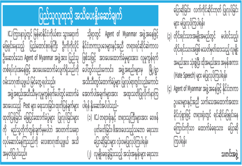 ဂမ်ဘီယာနှင့် မြန်မာတို့၏အမှုနှင့်ပတ်သက်၍ ကြားနာပွဲ (Oral Hearing) ကို ဇန်နဝါရီ ၁၂ ရက်မှ ၂၉ ရက်အထိ နယ်သာလန်နိုင်ငံ၊ သည်ဟိဂ်မြို့ရှိ အပြည်ပြည်ဆိုင်ရာတရားရုံး (ICJ)၌ ပြုလုပ်လျက်ရှိရာ မြန်မာ၏ ဒုတိယအကျော့လျှောက်လဲမှုကို ဇန်နဝါရီ ၂၈ ရက် ဒေသစံတော်ချိန် မွန်းလွဲ ၃ နာရီတွင် စတင်သည်။