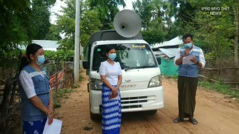 မြို့သစ်မြို့နယ်တွင် ကိုဗစ်-၁၉နှင့် သဘာဝဘေးအန္တရာယ် ကြိုတင်ကာကွယ်နိုင်ရေး အသံချဲ့စက်ဖြင့် နှိုးဆော်