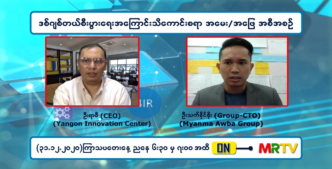 ဒီဇင်ဘာ ၃၁ ရက် (ကြာသပတေးနေ့) ညနေတွင် နိုင်ငံအများစုတွင် လက်ရှိအသုံးပြု နေသည့် စုပေါင်းဆောင်ရွက်ခြင်းဖြင့် ချဉ်းကပ်နိုင်မည့် နည်းလမ်းများ နှင့် ပတ်သက်ပြီး ဗဟုသုတမျှဝေပေးမည့် ဒစ်ဂျစ်တယ် စီးပွားရေးအကြောင်း သိကောင်းစရာ အစီအစဉ် အား Yangon Innovation Center မှ (CEO) ဉီးရာဝီ နှင့် Myanma Awba Group မှ (Group CTO) ဦးသက်နိုင်စိုး တို့က ဆွေးနွေးကြမည်ဖြစ်ရာ ၎င်းဆွေးနွေးချက်များကို ညနေ ၆ နာရီခွဲတွင် ထုတ်လွှင့်သွားမည် ဖြစ်ကြောင်း သိရသည်။