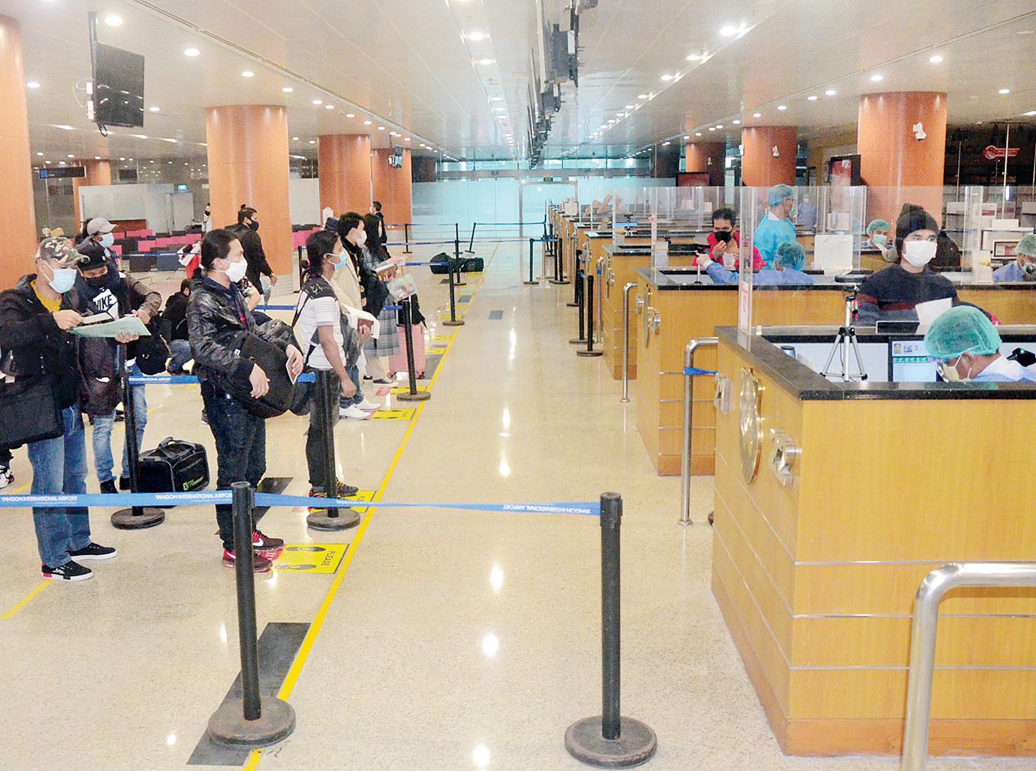 ၎င်းတို့ ရန်ကုန်အပြည်ပြည် ဆိုင်ရာလေဆိပ်သို့ ရောက်ရှိချိန်တွင် လူဝင်မှုကြီးကြပ်ရေး၊ ကျန်းမာရေး စိစစ်ရေး၊ သီးသန့်စီစဉ်ပေးသည့်နေရာ/ သတ်မှတ်ဟိုတယ်များ၌ အသွား အလာကန့်သတ်မှု ခုနစ်ရက်နှင့် နေအိမ်တွင် အသွားအလာကန့်သတ် မှု ခုနစ်ရက် နေထိုင်စေရေးတို့ကို အလုပ်သမား၊ လူဝင်မှုကြီးကြပ်ရေးနှင့် ပြည်သူ့အင်အားဝန်ကြီးဌာန၊ ကျန်းမာ ရေးနှင့် အားကစားဝန်ကြီးဌာနနှင့် ရန်ကုန်တိုင်းဒေသကြီး အစိုးရအဖွဲ့တို့မှ သက်ဆိုင်ရာ အခန်းကဏ္ဍအလိုက် တာဝန်ယူ ဆောင်ရွက်ပေးကြသည်။