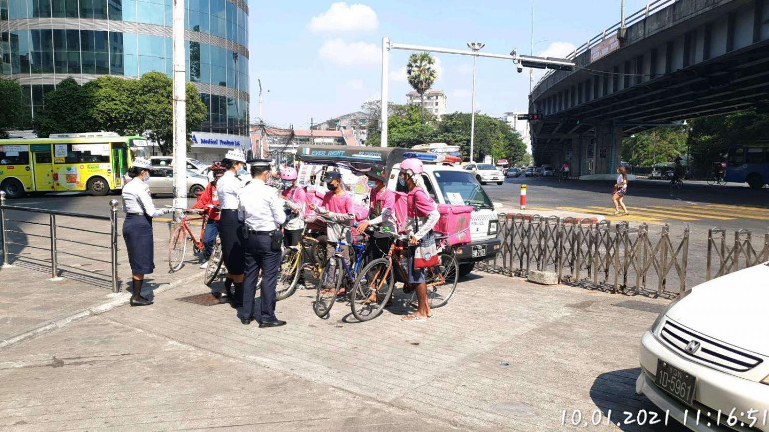 “စက်ဘီးစီး ပြည်သူတွေအနေနဲ့ ချမှတ်ထားတဲ့ ယာဉ်စည်းကမ်း၊ လမ်းစည်းကမ်းနဲ့အညီ စီးနင်းဖို့နဲ့ အနှေးယာဉ် မဝင်ရ လမ်းတွေမှာ  စီးတာတွေ၊ လမ်းပြောင်းပြန် စီးတာတွေ၊ မီးနီဖြတ် စီးတာတွေ၊ ယာဉ်စည်းကမ်း လမ်းစည်းကမ်း ချိုးဖောက် တာတွေကို ဥပဒေနဲ့အညီ အရေးယူ ဆောင်ရွက်သွားမှာ ဖြစ်ပါတယ်” ဟု အမှတ် (၃၉) ယာဉ်ထိန်းရဲတပ်ဖွဲ့စု တပ်ဖွဲ့စုမှူး ဒုတိယ ရဲမှူး ရဲထွန်းအောင်က ပြောကြားသည်။
