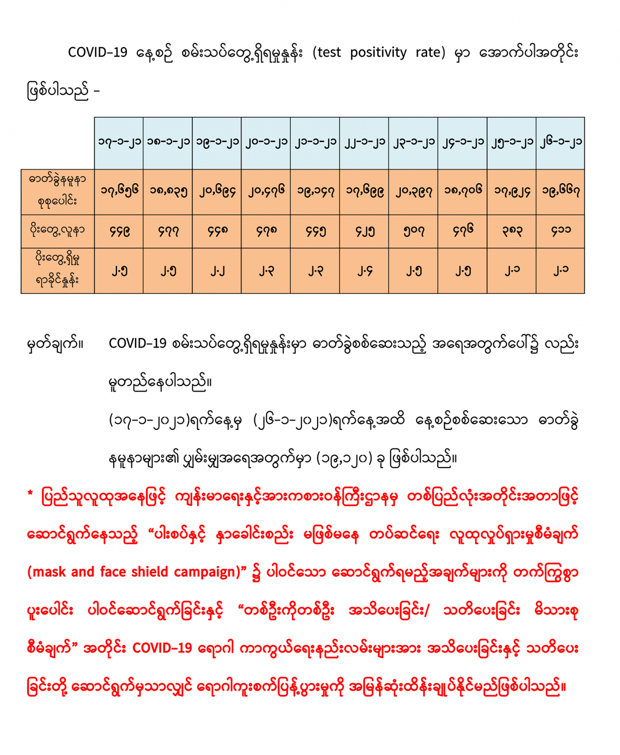 COVID-19 ရောဂါစောင့်ကြပ်ကြည့်ရှုမှုနှင့်ပတ်သက်၍ သတင်းထုတ်ပြန်ခြင်း