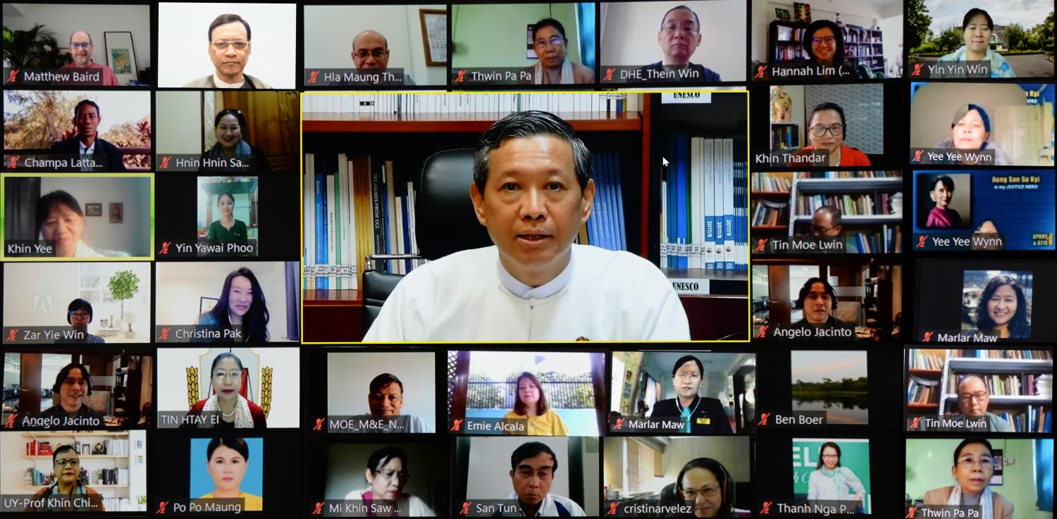 မြန်မာနိုင်ငံတက္ကသိုလ်များအတွက် ပတ်ဝန်းကျင်ထိန်းသိမ်းရေးဥပဒေ သင်ရိုးညွှန်းတမ်းများ ရေးဆွဲရေးလုပ်ငန်း စတင်ခြင်း အခမ်းအနားကို ယနေ့နံနက် ၉ နာရီတွင် ဗီဒီယိုကွန်ဖရင့် စနစ်ဖြင့် ကျင်းပသည်။