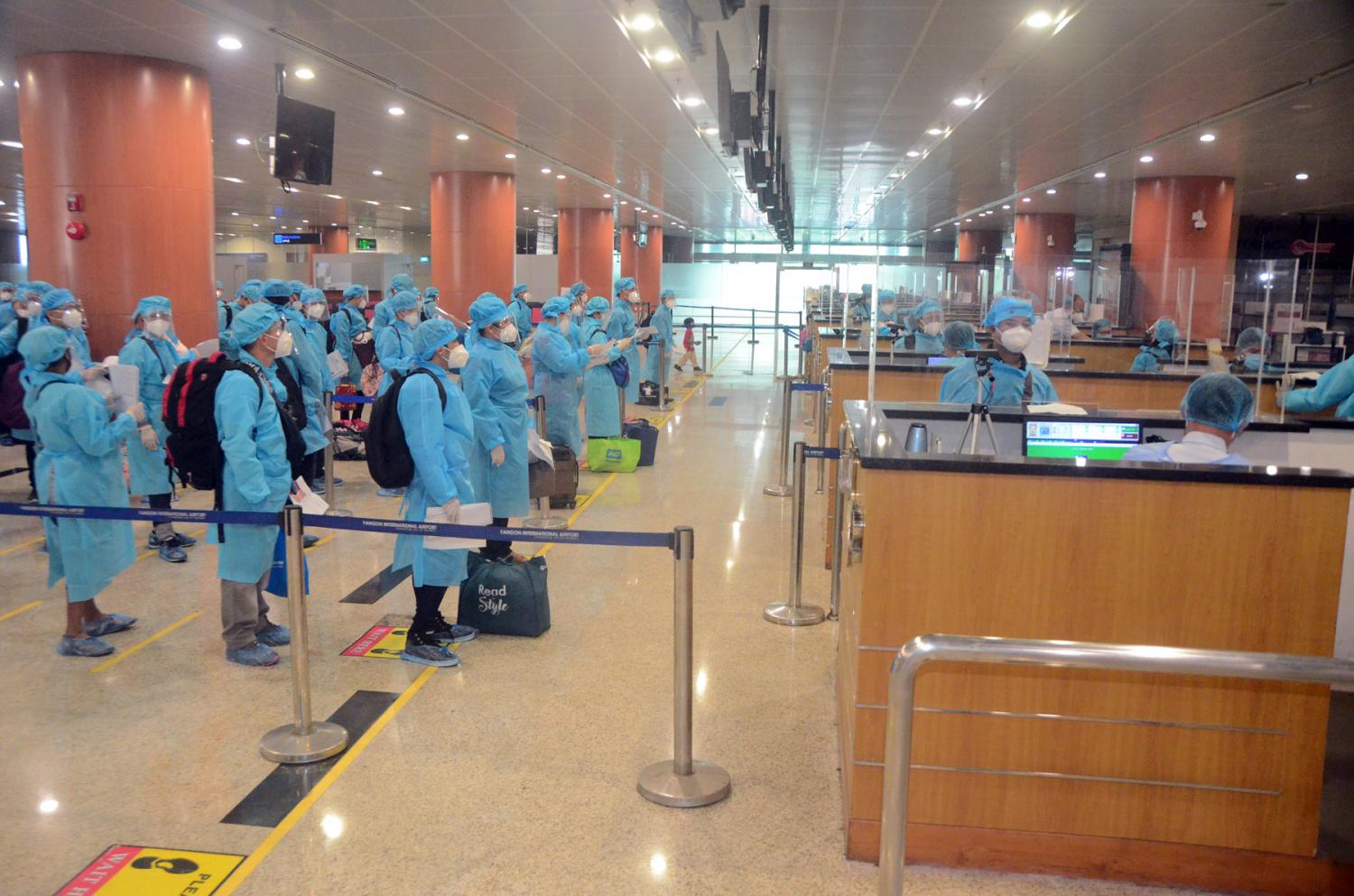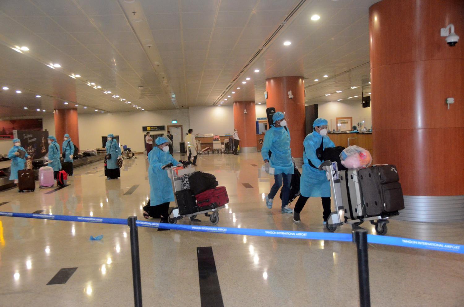 ၎င်းတို့ ရန်ကုန်အပြည်ပြည်ဆိုင်ရာလေဆိပ်သို့ ရောက်ရှိချိန်တွင် လူဝင်မှုကြီးကြပ်ရေး၊ ကျန်းမာရေးစိစစ်ရေး၊ သီးသန့်စီစဉ်ပေးသည့်နေရာ / သတ်မှတ် ဟိုတယ်များ၌ အသွားအလာ ကန့်သတ်မှု (၁၄) ရက်နှင့် နေအိမ်တွင် အသွားအလာကန့်သတ်မှု (၇) ရက် နေထိုင်စေရေး တို့ကို အလုပ်သမား၊ လူဝင်မှုကြီးကြပ်ရေးနှင့်ပြည်သူ့အင်အားဝန်ကြီးဌာန၊ ကျန်းမာရေးနှင့် အားကစား ဝန်ကြီးဌာနတို့မှ သက်ဆိုင်ရာ အခန်းကဏ္ဍ အလိုက် တာဝန်ယူ ဆောင်ရွက် ပေးခဲ့ကြသည်။