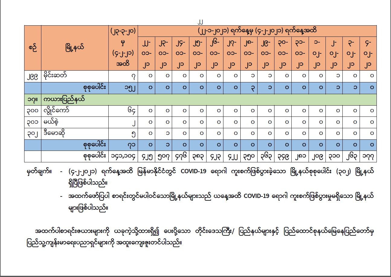 COVID-19 ရောဂါ စောင့်ကြပ်ကြည့်ရှုမှုနှင့် ပတ်သက်၍ သတင်းထုတ်ပြန်ခြင်း (5-2-2021, 6:00 PM)