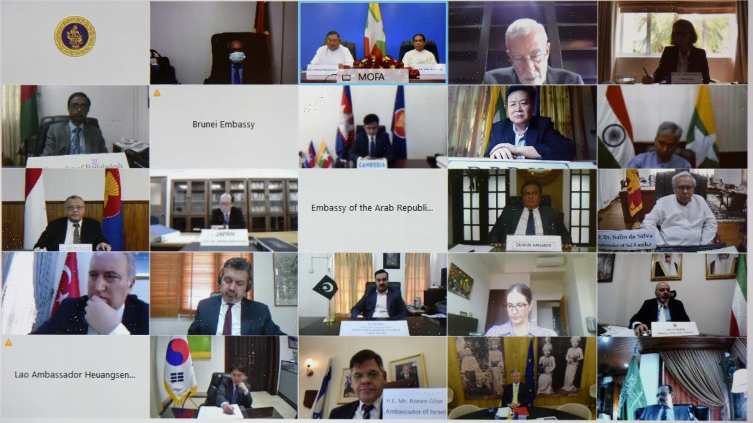 မြန်မာနိုင်ငံ၌ လက်ရှိဖြစ်ပေါ်လျက်ရှိသော အခြေအနေများနှင့်ပတ်သက်၍ နိုင်ငံခြားရေး ဝန်ကြီးဌာန ပြည်ထောင်စုဝန်ကြီး ဦးဝဏ္ဏမောင်လွင် နှင့် အပြည်ပြည်ဆိုင်ရာပူးပေါင်း ဆောင်ရွက်ရေးဝန်ကြီးဌာန ပြည်ထောင်စုဝန်ကြီး ဦးကိုကိုလှိုင်တို့က ယနေ့မွန်းလွဲပိုင်းတွင် မြန်မာနိုင်ငံ အခြေစိုက် ပြည်ပသံရုံးများမှ သံအမတ်ကြီးများ၊ သံတမန်များနှင့် ကုလသမဂ္ဂ လက်အောက်ခံအဖွဲ့အစည်းအများမှ အကြီးအကဲများအား ဗီဒီယိုကွန်ဖရင့်စနစ်ဖြင့် ရှင်းလင်း ပြောကြားသည်။