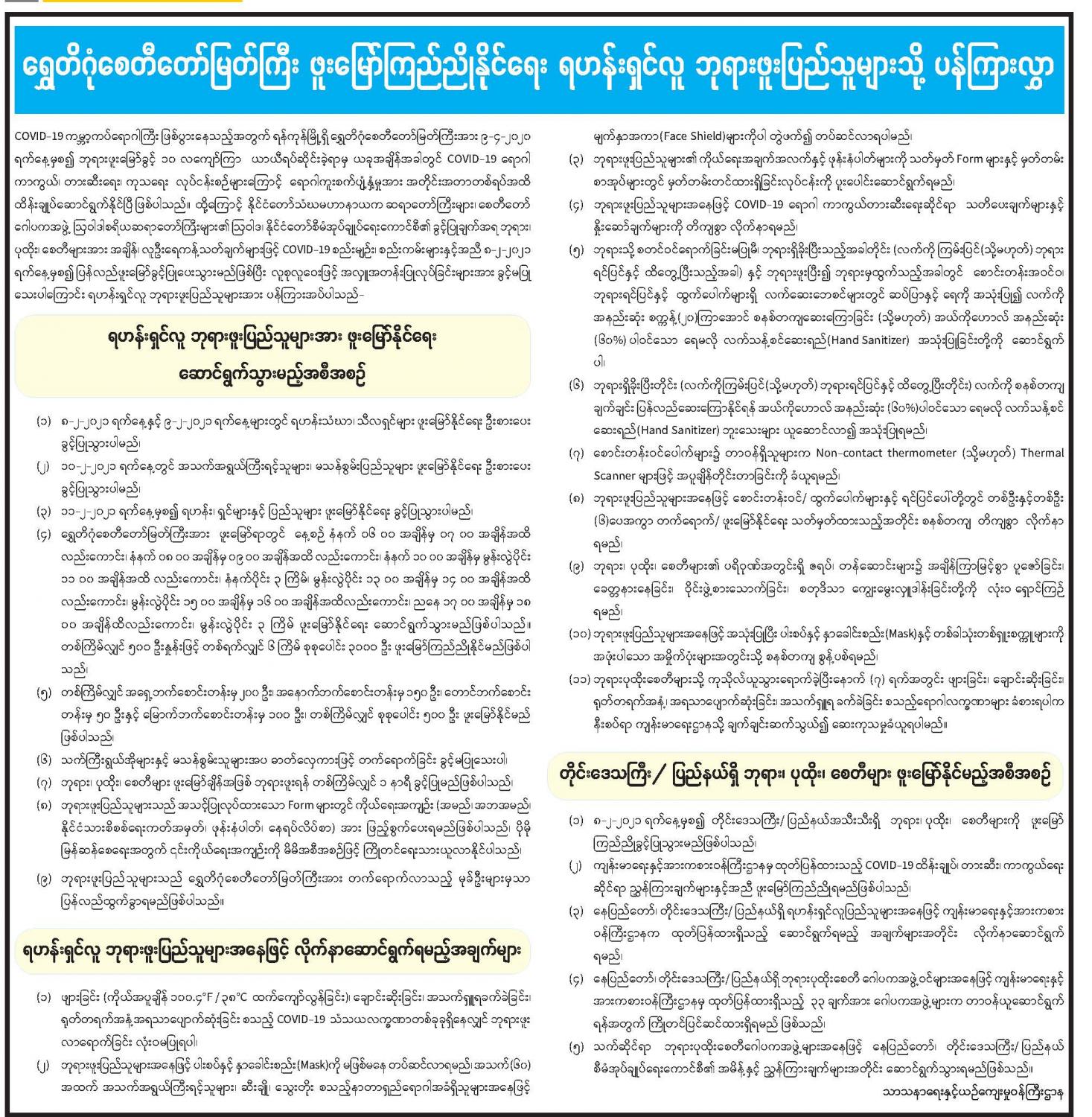 ရွှေတိဂုံစေတီတော်မြတ်ကြီး ဖူးမြော်ကြည်ညိုနိုင်ရေး ရဟန်းရှင်လူ ဘုရားဖူးပြည်သူများသို့ ပန်ကြားလွှာ 02/08/2021