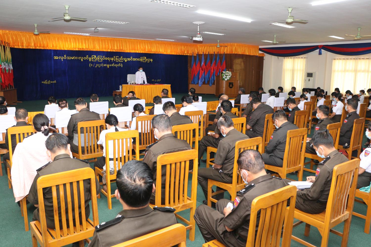 ထို့နောက် လုပ်ငန်းလိုအပ်ချက်များကို ဌာနအလိုက် တာဝန်ရှိသူများက တင်ပြကြရာ အမြဲတမ်းအတွင်းဝန်နှင့် ညွှန်ကြားရေးမှူးချုပ်များက ညှိနှိုင်းဖြည့်ဆည်းဆောင်ရွက်ပေးပြီး ပြည်ထောင်စုဝန်ကြီးက ယခုအခါ အရေးပေါ် ကာလ သတ်မှတ်ထားသည့်အတွက် နေထိုင် သွားလာမှုများအား စနစ်တကျဂရုပြုဆောင်ရွက်ကြရန်နှင့် ဝန်ထမ်း တိုင်းသည် ပါတီနိုင်ငံရေး ကင်းရှင်းပြီး ဝန်ထမ်းကျင့်ဝတ်နှင့်အညီ ဆောင်ရွက်ကြရေး မိမိဌာနရည်မှန်းချက် တာဝန်များ အောင်မြင်ရေးအတွက် အချင်းချင်းစည်းလုံးညီညွတ်စွာဖြင့် ဝိုင်းဝန်းကြိုးပမ်းဆောင်ရွက်ကြရန် ပြောကြားသည်။