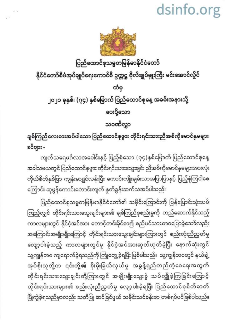 ပြည်ထောင်စုသမ္မတ မြန်မာနိုင်ငံတော် နိုင်ငံတော်စီမံအုပ်ချုပ်ရေးကောင်စီဥက္ကဋ္ဌ ဗိုလ်ချုပ်မှူးကြီး မင်းအောင်လှိုင်ထံ မှ ၂၀၂၁ ခုနှစ်၊ (၇၄) နှစ်မြောက် ပြည်ထောင်စုနေ့ အခမ်းအနားသို့ ပေးပို့သော သဝဏ်လွှာ 02/27/2021