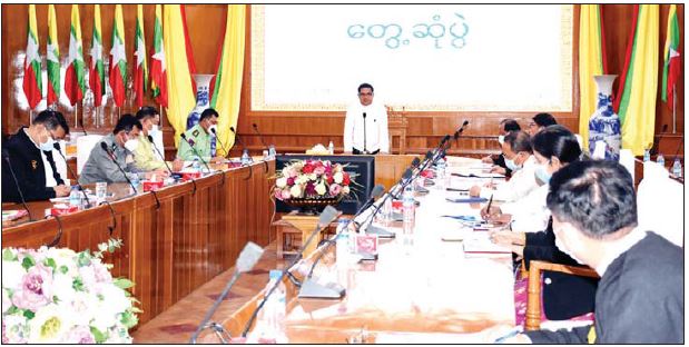 အလားတူ ပြည်နယ်ကောင်စီဥက္ကဋ္ဌသည် မွန်းလွဲ ၁ နာရီခွဲတွင် ပြည်နယ်အဆင့်ဌာနဆိုင်ရာများနှင့် တွေ့ဆုံပြီး ဌာနဆိုင်ရာများအနေဖြင့် နိုင်ငံ၏တာဝန်ကို ထမ်းဆောင်ရာတွင် နိုင်ငံ့ဝန်ထမ်း ဥပဒေပါအတိုင်း စည်းမျဉ်းစည်းကမ်းနှင့်အညီ လုပ်ကိုင်ဆောင်ရွက်ကြရေး၊ နိုင်ငံတော်ကောင်စီ၏ မူဝါဒအတိုင်း အားလုံးက တည်တည်ငြိမ်ငြိမ်ဖြင့် ဝိုင်းဝန်းကြိုးပမ်းဆောင်ရွက်ကြရေးနှင့် လုပ်ငန်း ဆောင်ရွက်မှုများကို အရှိန်အဟုန်မပြတ် ဆောင်ရွက်နိုင်ရေး လိုအပ်သည်များကို တင်ပြ၍ ပေါင်းစပ်ညှိနှိုင်း ဆောင်ရွက်သွားကြရေး မှာကြားပြီး ကောင်စီအဖွဲ့ဝင်များ၏ သက်ဆိုင်ရာဌာနအလိုက် တာဝန်ယူဆောင်ရွက်သွားမည့် အခြေအနေများကို ရှင်းလင်းပြောကြားပြီး ဌာနများအလိုက် လိုအပ်ချက်များကို မေးမြန်းဆွေးနွေးခဲ့ကြကာ လိုအပ်သည်များကို ပြည်နယ်ကောင်စီဥက္ကဋ္ဌက ပေါင်းစပ်ဆောင်ရွက်ပေးသည်။