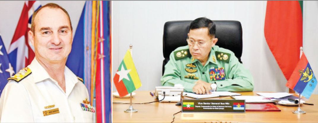 နိုင်ငံတော် စီမံအုပ်ချုပ်ရေးကောင်စီ ဒုတိယဥက္ကဋ္ဌ ဒုတိယတပ်မတော် ကာကွယ်ရေးဦးစီးချုပ် ကာကွယ်ရေး ဦးစီးချုပ်(ကြည်း) ဒုတိယဗိုလ်ချုပ်မှူးကြီး စိုးဝင်းသည် သြစတြေးလျတပ်မတော်၏ Vice Chief of the Defence Force ဖြစ်သူ Vice Admiral David Johnston AO RAN နှင့် ယနေ့မွန်းလွဲပိုင်းတွင် တယ်လီဖုန်း ဖြင့် ဆွေးနွေးသည်။