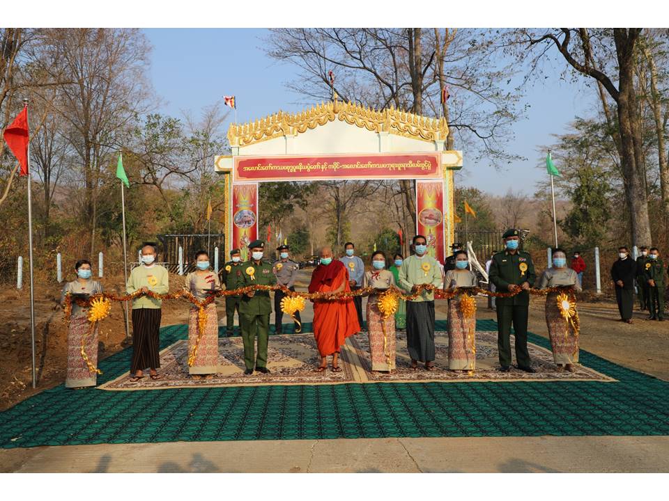 ရှေးဦးစွာ အလောင်းတော်ကဿပ ဗုဒ္ဓပူဇနိယပွဲတော်နှင့် ကပိုင်-သပိတ်ဆေး-ဘုရားဖူးရာသီ လမ်းဖွင့်ပွဲ အထိမ်းအမှတ်မုဒ်ဦးအား က/သီကုန်းကျောင်းတိုက်ဆရာတော် ဦးဝိစိတ္တ၊ စစ်ကိုင်းတိုင်းဒေသကြီး စီမံအုပ်ချုပ်ရေးကောင်စီ ဥက္ကဋ္ဌ ဦးမောင်မောင်လင်း၊ အနောက်မြောက်တိုင်းစစ်ဌာနချုပ် တိုင်းမှူး ဗိုလ်မှူးချုပ် ဖြိုးသန့်၊ တိုင်းဒေသကြီး စီမံအုပ်ချုပ်ရေးကောင်စီအဖွဲ့ဝင် ဗိုလ်မှူးကြီး ဝင်းတင်စိုး နှင့် ယင်းမာပင်ခရိုင် စီမံအုပ်ချုပ်ရေးအဖွဲ့ဥက္ကဋ္ဌ ဦးထွန်းထွန်းနိုင် တို့က ဖဲကြိုးဖြတ်ဖွင့်လှစ်ပေးကြပြီး အမှတ်တရစုပေါင်းမှတ်တမ်းတင် ဓာတ်ပုံရိုက်ကူးခဲ့ကြသည်။