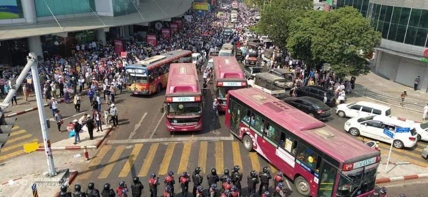 အဆိုပါထုတ်ပြန်ချက်တွင် စမ်းချောင်းမြို့နယ်၊ မြေနီကုန်း ကုန်းကျော်တံတားအောက်တွင် လူစုလူဝေး အင်အား ၃၀၀၀ ကျော်ခန့်နှင့် ကမာရွတ်မြို့နယ်၊ လှည်းတန်းလမ်းဆုံတွင် လူစုလူဝေးအင်အား ၃၀၀၀ ကျော်ခန့်တို့သည် ယနေ့နံနက် ၈ နာရီတွင် ဆူပူဆန္ဒပြနေကြကြောင်း သတင်းရရှိသဖြင့် အုပ်ချုပ်မှု ဆိုင်ရာ တာဝန်ရှိသူများနှင့် လုံခြုံရေး တပ်ဖွဲ့ဝင်များ သွားရောက်ကာ အမိန့်ညွှန်ကြားချက်များနှင့်အညီ လူစုခွဲရန် အကြိမ်ကြိမ်သတိပေးပြောဆိုခဲ့သော်လည်း လိုက်နာမှုမရှိဘဲ ကြွေးကြော်သံအမျိုးမျိုး အော်ဟစ်ကာ ဆက်လက်ဆူပူဆန္ဒပြခဲ့ကြကြောင်း။