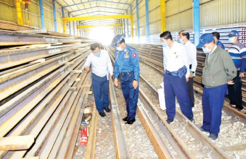 ထို့နောက် ပြည်ထောင်စုဝန်ကြီးနှင့်အဖွဲ့သည် ရှင်းလင်းဆောင်ဝင်းအတွင်းရှိ သံလမ်း(၈)ချောင်း ဂဟေဆက်လုပ် ငန်းခွင်သို့ ရောက်ရှိပြီး သံလမ်းဆက် လုပ်ငန်းများနှင့် ပတ်သက်၍ အထွေထွေ မန်နေဂျာ ဦးမောင်မောင်လွင်က ရှင်းလင်းပြသခဲ့ရာ ပြည်ထောင်စု ဝန်ကြီးက လိုအပ်သည်များ မှာကြားသည်။