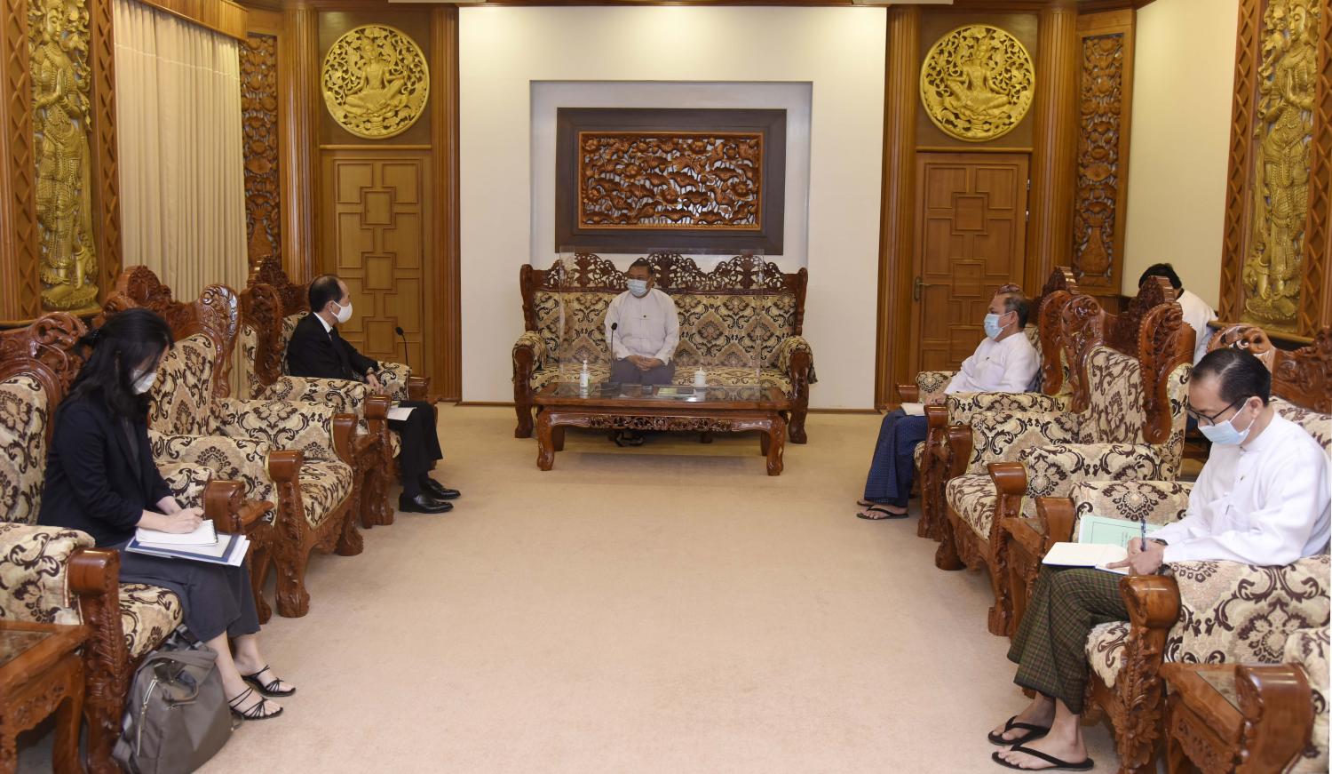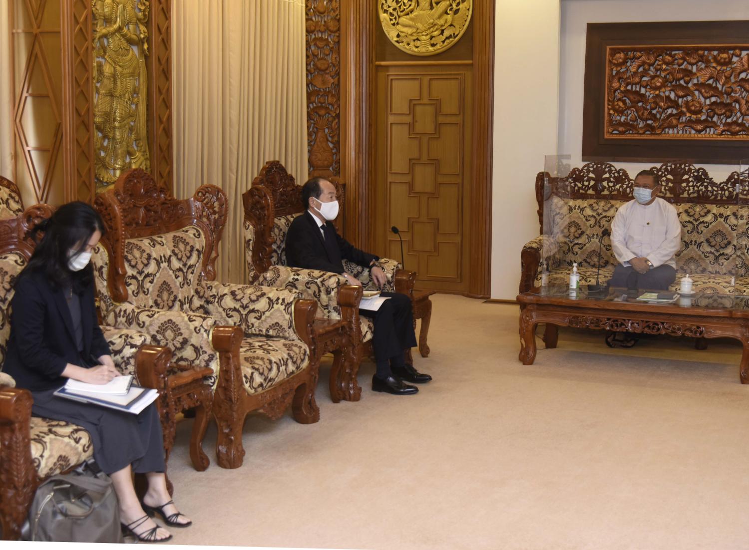တွေ့ဆုံစဉ် မြန်မာနိုင်ငံနှင့် ဂျပန်နိုင်ငံအကြား ရှိရင်းစွဲ ချစ်ကြည်ရင်းနှီးမှုနှင့် ပူးပေါင်း ဆောင်ရွက် မှုများကို ထိန်းသိမ်းမြှင့်တင်သွားရန် ပွင့်လင်းစွာ အမြင်ချင်း ဖလှယ်ဆွေးနွေးခဲ့ကြသည်။