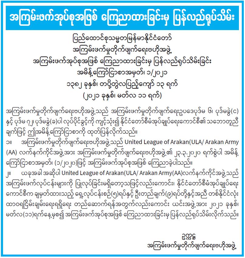 နိုင်ငံတော်အစိုးရ၏ ကြေညာချက်များ