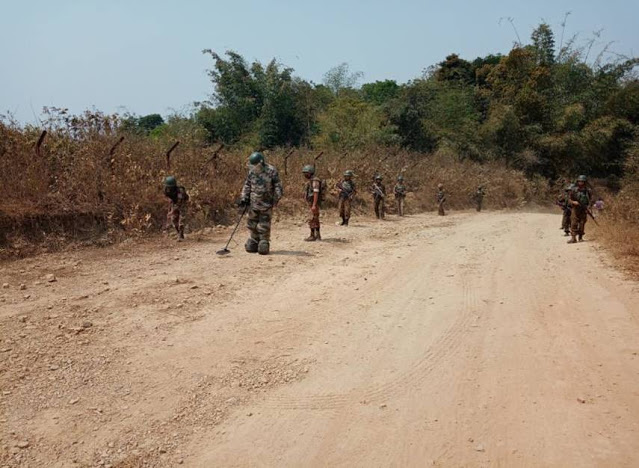 ရခိုင်ပြည်နယ်အတွင်းရှိ တိုက်ပွဲရှောင်ပြည်သူများ ၎င်းတို့၏နေရပ်ဒေသအသီးသီးသို့ ပြန်လည်နေထိုင် နိုင်ရေး အတွက် အနောက်ပိုင်းတိုင်းစစ်ဌာနချုပ် နယ်မြေခံတပ်မတော်သား များက မိုင်းရှင်းလင်းရေးလုပ်ငန်းများ ဆောင်ရွက် ပေးသည်။