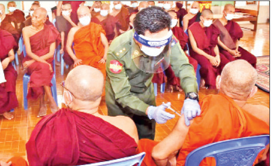 ထေရ်ကြီးဝါကြီး ဆရာတော်ကြီးများ၊ သာသနာ့နွယ်ဝင် သီလရှင်များ၊ ဌာနဆိုင်ရာ ဝန်ထမ်း များနှင့်ဒေသခံတိုင်းရင်းသားပြည်သူများအား ကိုဖစ်-၁၉ ရောဂါ ကာကွယ်ဆေးထိုးနှံ