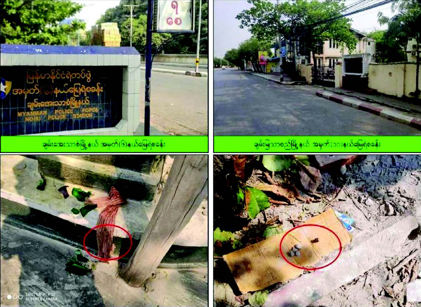 ထိုသို့ လုံခြုံရေးတပ်ဖွဲ့ဝင်များ၏ ဆောင်ရွက်ချက်ကို ကျေနပ်မှုမရှိသော အကြမ်းဖက်လူအုပ်စုက မွန်းလွဲ ၂ နာရီ မိနစ် ၂၀ တွင် မဟာအောင်မြေမြို့နယ် ချမ်းမြသာစည် (မြောက်)ရပ်ကွက် ၇၈ လမ်းနှင့် ၄၂ လမ်းထောင့်ရှိ ရဲစခန်းအား ၇၈ လမ်းမှ မောင်းနှင်လာသည့် ဆိုင်ကယ် ငါးစီး၊ လူ ၁၀ ဦးခန့်(စိစစ်ဆဲ) တို့က ရဲစခန်းမြောက်ဘက်ပေါက်အား လေးခွများဖြင့် လာရောက်ပစ်ခတ် ခဲ့သဖြင့် ရဲစခန်းရှိတပ်ဖွဲ့ဝင်များက ပြန်လည်ခြောက်လှန့်ပစ်ခတ်ခဲ့ရာ အဆိုပါ လေးခွဖြင့် အကြမ်းဖက်ပစ်ခတ်သူများမှာ မောင်းနှင် ထွက်ပြေးသွားခဲ့ကြောင်း၊ ထို့ပြင် အောင်မြေသာစံ မြို့နယ် သီရိမာလာအရှေ့ရပ်ကွက် အကွက် ၂၀၀ ၂၆ လမ်း၊ ၈၉ x ၉၀ လမ်းကြားရှိ ရဲစခန်းအား ၂၆ လမ်းပေါ်မှ ဆိုင်ကယ် ခြောက်စီးနှင့် လူ ၁၂ ဦးခန့် (စိစစ်ဆဲ) မောင်းနှင်ရောက်ရှိလာပြီး လမ်းလယ် မျဉ်းနေရာမှ ရဲစခန်းဝင်းအတွင်းသို့ မီးရှို့ထားသော ဓာတ်ဆီပုလင်း နှစ်လုံး၊ ရဲစခန်း ရှေ့ မျက်နှာစာသို့ ဓာတ်ဆီပုလင်း တစ်လုံးတို့ဖြင့် အကြမ်းဖက်ရန်ပြု ပစ်ပေါက်ခဲ့ရာ ရဲစခန်း ဝင်းရှိ စစ်ရေးပြကွင်း၊ နေအိမ်လိုင်းခန်းရှေ့နှင့် ရဲစခန်းဝင်ပေါက်အနီးတို့တွင် ကျရောက်ခဲ့သဖြင့် ရဲစခန်းရှိ တပ်ဖွဲ့ဝင်များက ပြန်လည်ခြောက်လှန့်ပစ်ခတ်ခဲ့ရာ အဆိုပါအကြမ်းဖက်သူများမှာ မောင်းနှင်ထွက်ပြေးသွားခဲ့ကြောင်း သိရသည်။