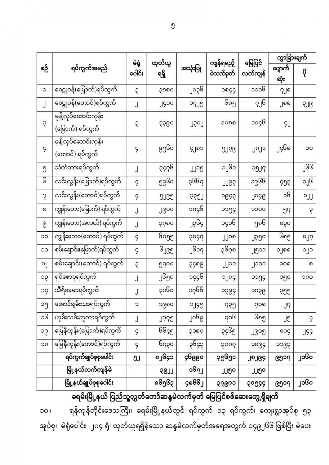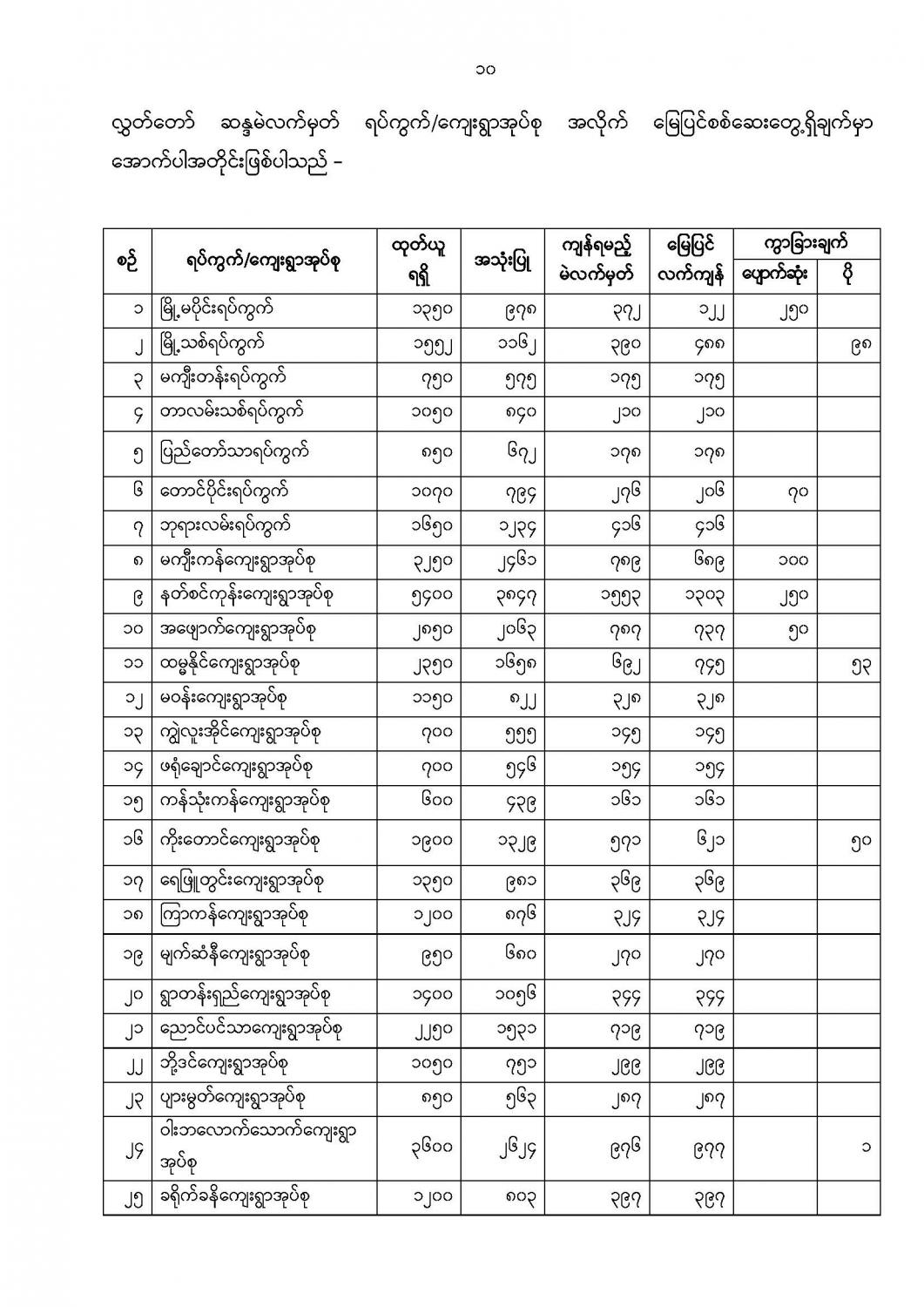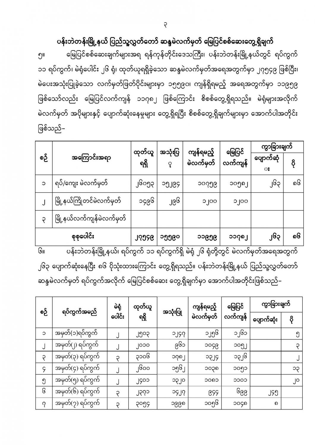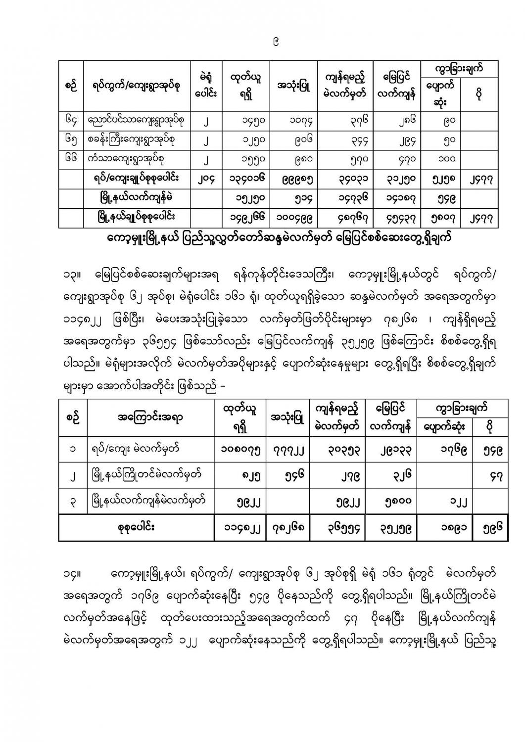 ဦးစီးဌာနနှင့် လုပ်ငန်းများ၏ ကြေညာချက်များ
