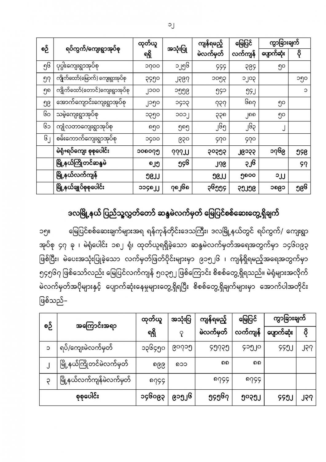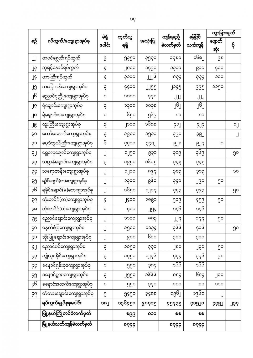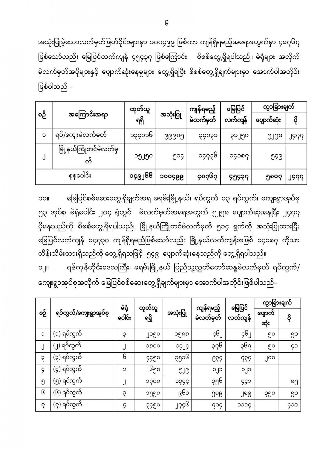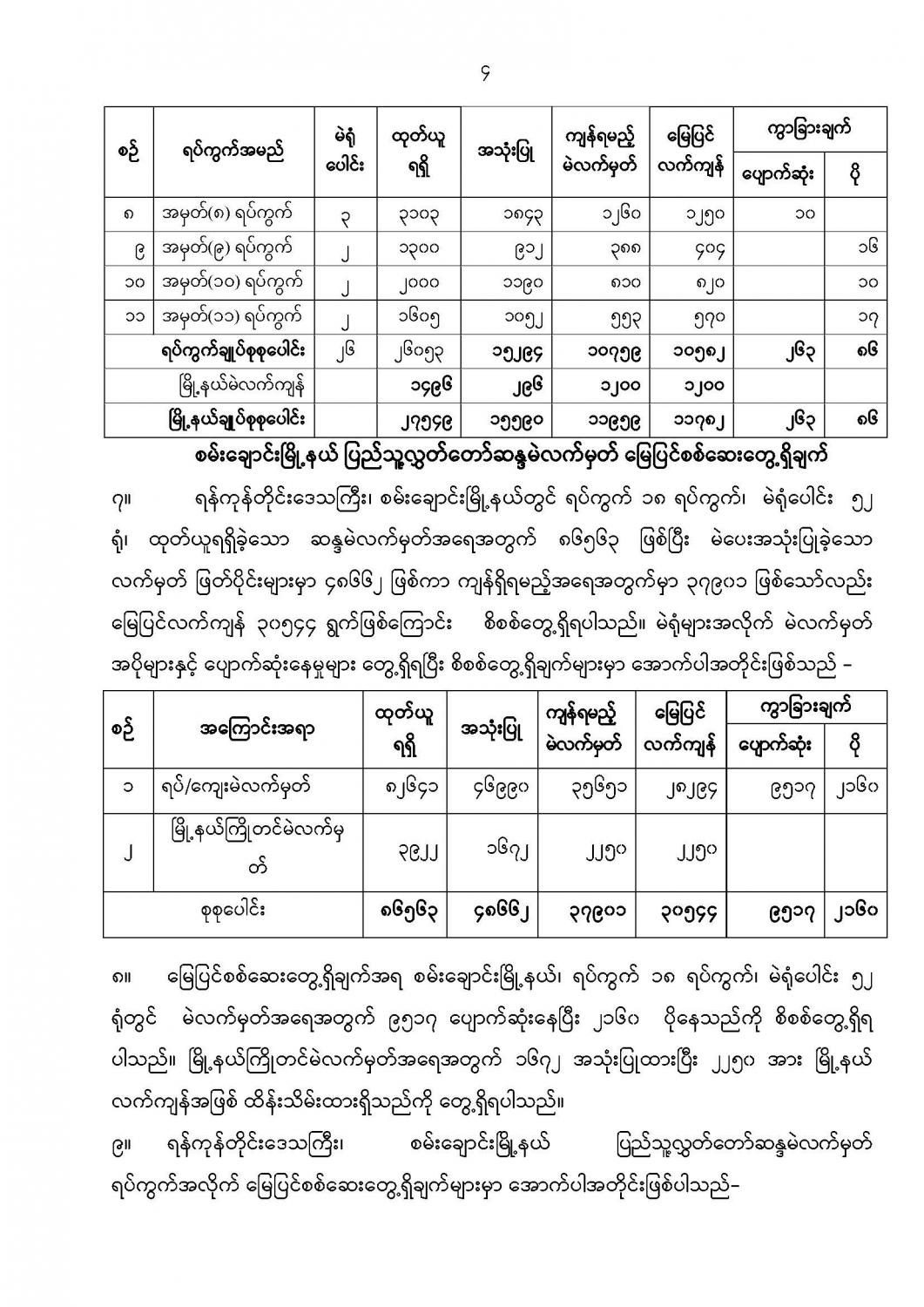 ဦးစီးဌာနနှင့် လုပ်ငန်းများ၏ ကြေညာချက်များ