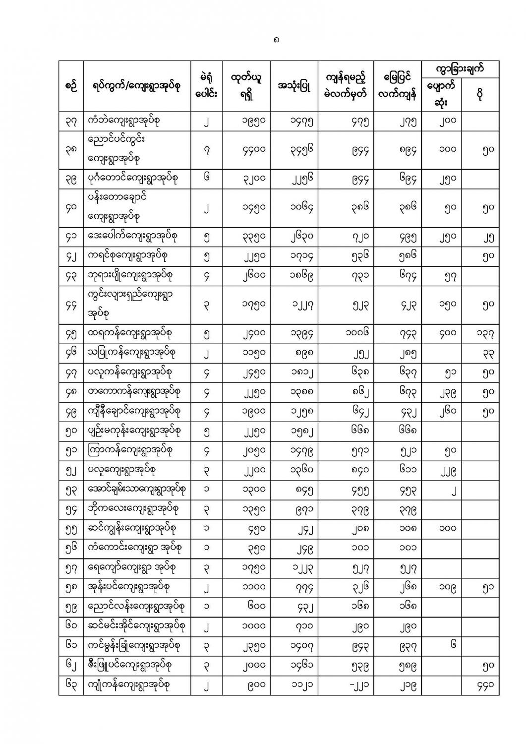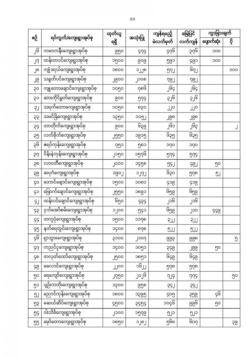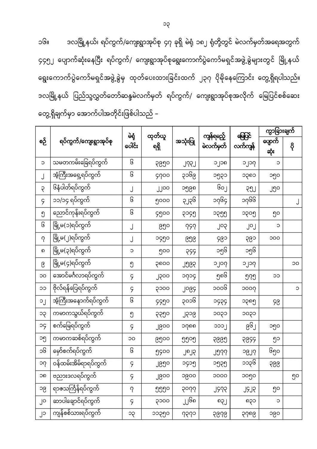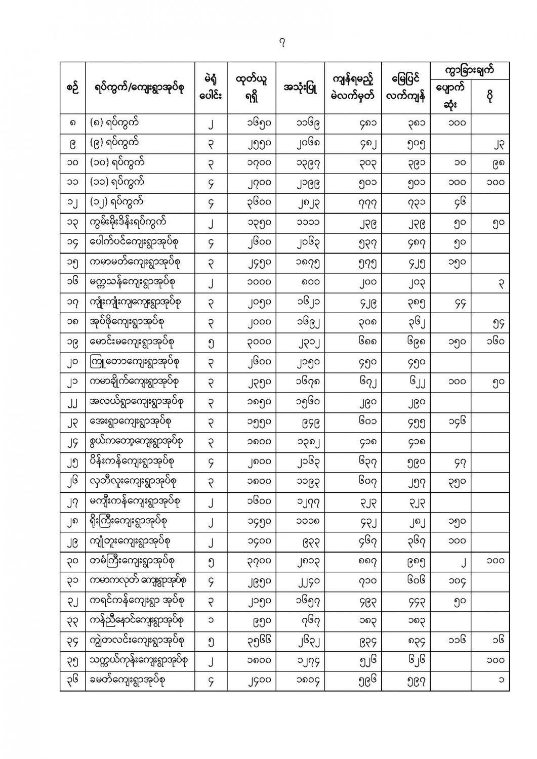 ဦးစီးဌာနနှင့် လုပ်ငန်းများ၏ ကြေညာချက်များ