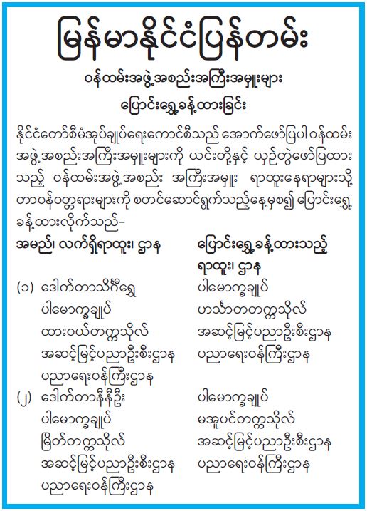 ဝန်ကြီးဌာန ကြေညာချက်များ