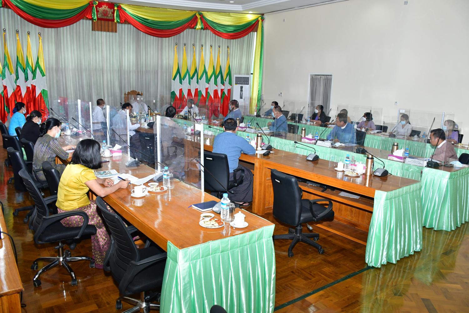 တိုင်းရင်းသားဘာသာသင် ဆရာ/ဆရာမများခန့်ထားနိုင်ရေးနှင့် ဆရာ/ဆရာမများ၏ လုပ်အားခ များ တိုးမြှင့်ပေးနိုင်ရေး ညှိနှိုင်းအစည်းအဝေးကို ယမန်နေ့ နံနက် ၁၀ နာရီခွဲတွင် နေပြည်တော် ရှိ တိုင်းရင်းသား လူမျိုးများရေးရာဝန်ကြီးဌာန အစည်းအဝေးခန်းမ၌ ကိုဗစ်-၁၉ တားဆီးကာကွယ် ရေး ကျန်းမာရေးဆိုင်ရာ ညွှန်ကြားချက်များနှင့်အညီ ကျင်းပသည်။