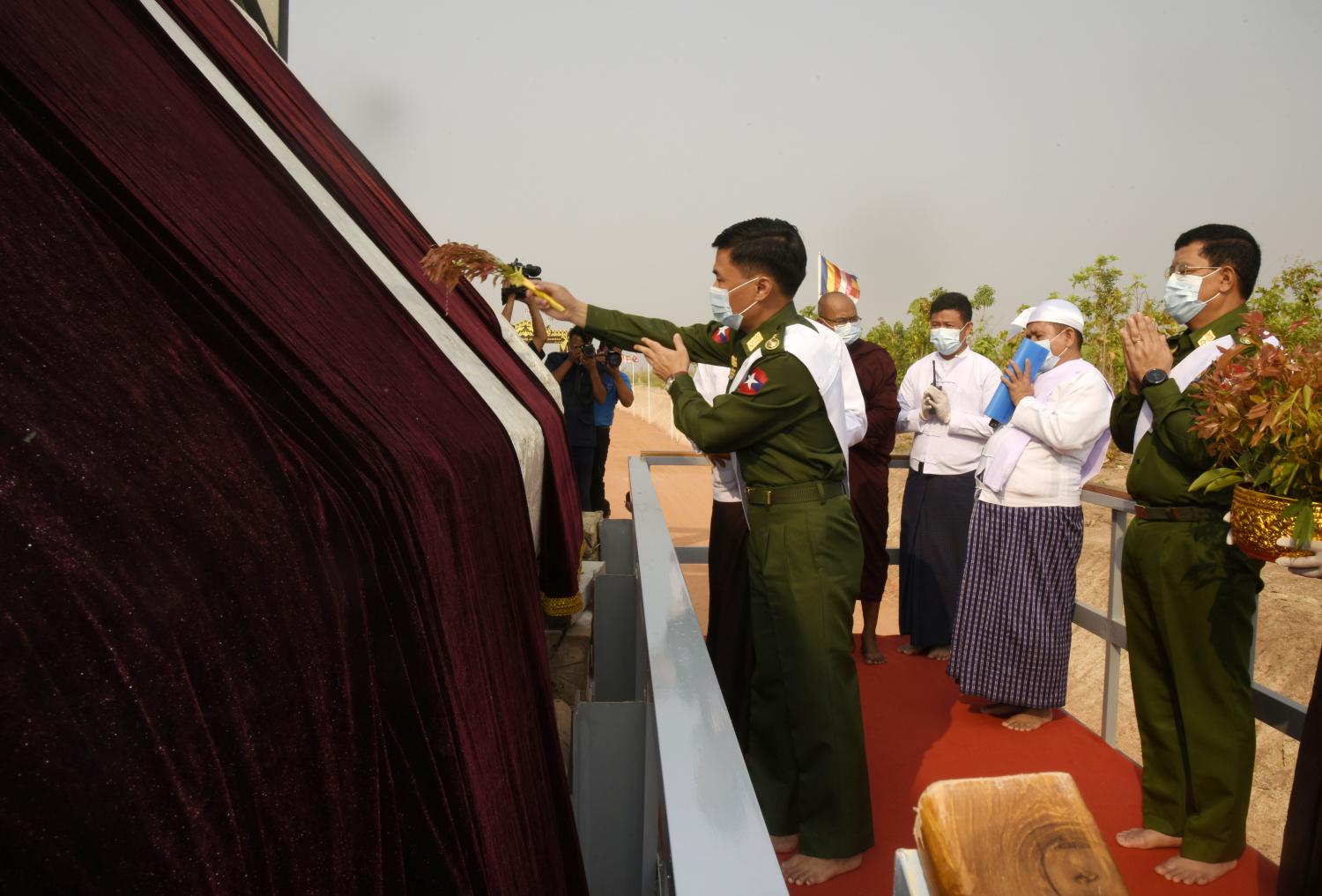 နေပြည်တော် မတ် ၂၆ ဘူမိဖဿမုဒြာထိုင်တော်မူကျောက်ဆစ်ဗုဒ္ဓရုပ်ပွားတော်မြတ်ကြီး၏ အစိတ်အပိုင်းအား ပဉ္စမအကြိမ် ကြိုဆိုပင့်ဆောင်ခြင်း မဟာမင်္ဂလာအခမ်းအနားကို ယနေ့နံနက်ပိုင်းတွင် နေပြည်တော်၊ ဒဏ္ခိသီရိမြို့နယ်ရှိ ဗုဒ္ဓဉယျာဉ်တော်အတွင်းရှိ မဟာမင်္ဂလာမဏ္ဏပ်၌ ကျင်းပ သည်။ အဆိုပါအခမ်းအနားသို့ လယ်ဝေးမြို့နယ်သံဃနာယက ဉက္ကဌ မြို့ဦးဓမ္မာရုံဆရာတော် ဘဒ္ဒန္တအဂ္ဂစာရ အမှူးပြုသောဆရာတော်သံဃာတော်အရှင်သူမြတ်များ ကြွရောက်ချီးမြှင့်တော် မူကြပြီး စစ်ထောက်ချုပ် ဒုတိယဗိုလ်ချုပ်ကြီး ကျော်စွာလင်း၊ ကာကွယ်ရေးဦးစီးချုပ်ရုံး (ကြည်း)မှ ဒုတိယဗိုလ်ချုပ်ကြီး ကံမြင့်သန်း၊ နေပြည်တော်တိုင်းစစ် ဌာနချုပ်တိုင်းမှူး ဗိုလ်ချုပ် ဇော်မျိုးတင်နှင့် ဖိတ်ကြားထားသည့် ဧည့်သည်တော်များ တက်ရောက်ကြသည်။ ရှေးဦးစွာ အခမ်းအနားကို နမောတဿ သုံးကြိမ်ရွတ်ဆိုဘုရားကန်တော့ဖွင့်လှစ်ပြီး လယ်ဝေးမြို့နယ်သံဃနာယကဆရာတော် အမှူးပြုသော သံဃာတော် အရှင်သူမြတ်တို့က မေတ္တာပို့ဂါထာတော်များကို ရွတ်ဆိုပူဇော်၍ မေတ္တာပြုတော်မူသည်။ ထို့နောက် ဘုရား ဒါယ ကာ၊ ဒါယိကာမများနှင့် ဧည့်ပရိသတ်အပေါင်းတို့က အရိယာသာဝိတ္ထီဂါထာ၊ ဘုရား ဂုဏ်တော်ကိုးပါး၊ ပဌာန်းပစ္စယုဒ္ဒေသပါဠိတော် ပါဝင်သော ရတနတ္တယပူဇာ ဂါထာများနှင့် မေတ္တာပို့လင်္ကာများကို သံပြိုင် ညီညာစွာ ရွတ်ဆိုပူဇော်ကြသည်။ ဆက်လက်ပြီး ဘူမိဖဿမုဒြာထိုင်တော်မူကျောက်ဆစ်ဗုဒ္ဓရုပ်ပွားတော်ကြီး၏ ဆင်းတု တော် အပိုင်း(၄)ကို လယ်ဝေးမြို့နယ်သံဃနာယကဆရာတော်က ဦးဆောင်၍ တက်ရောက် လာကြသည့် တပ်မတော်အရာရှိကြီးများ၊ ဘုရား ဒါယကာများက အမွှေးနံ့သာရည်များဖြင့် ပက်ဖျန်း ပူဇော်ကြပြီး ဇယမင်္ဂလာအောင်ဂါထာတော်များကို ရွတ်ဆိုပူဇော်ကြသည်။ ထို့နောက် မင်္ဂလာ အချိန်တွင် ဘူမိဖဿမုဒြာထိုင်တော်မူကျောက်ဆစ်ဗုဒ္ဓရုပ်ပွားတော်မြတ်ကြီး၏ ဆင်းတုတော် အပိုင်း(၄)ကို အပူဇော်ခံမည့်နေရာသို့ ဆက်လက်ပင့်ဆောင်တော်မူကြသည်။ ယင်းနောက် ဗုဒ္ဓသာသနံစိရံတိတု သုံးကြိမ်ရွတ်ဆိုဆုတောင်း၍ အခမ်းအနား ရုပ် သိမ်းခဲ့ရာ ဝတ်အသင်းများက အရပ်ဆယ်မျက်နှာ မေတ္တာပို့လင်္ကာများဖြင့် မေတ္တာဘာဝနာ ပွားများပူဇော်ခြင်းနှင့် အမျှပေးဝေခြင်းများကိုဆောင်ရွက်ခဲ့ကြပြီး အခမ်းအနားအောင်မြင် ပြီးမြောက်ခြင်းအထိမ်းအမှတ်အဖြစ် ရတနာရွှေမိုး၊ ငွေမိုးများရွာသွန်းဖြိုးခဲ့ကြသည်။ ယနေ့ကြိုဆိုပင့်ဆောင်သည့် ဘူမိဖဿမုဒြာထိုင်တော်မူကျောက်ဆစ် ဗုဒ္ဓရုပ်တော် မြတ်ကြီး၏ ဆင်းတုတော် အပိုင်း ၂ အရန် အလေးချိန် ၅၆၃ တန်နှင့် ဆင်းတုတော်အပိုင်း ၄ အလေးချိန် ၈၀၀ တန်ရှိပြီး အဆိုပါအစိတ်အပိုင်းများအား မတ်လ ၂၀ ရက်နေ့တွင် ဆီးမီခုံ ဆိပ်ကမ်းမှ Modular Trailer များဖြင့် 