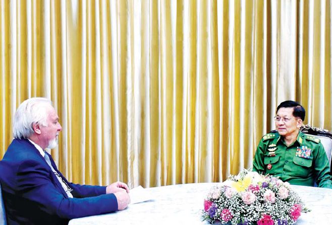 နေပြည်တော်၊ မတ် - ၂၆ နိုင်ငံတော်စီမံအုပ်ချုပ်ရေးကောင်စီဥက္ကဋ္ဌ တပ်မတော်ကာကွယ်ရေးဦးစီးချုပ် ဗိုလ်ချုပ်မှူးကြီး မင်းအောင်လှိုင်သည် ရုရှားဖက်ဒရေးရှင်းနိုင်ငံပြည်သူ့ကောင်စီဥက္ကဋ္ဌနှင့် သမ္မတ၏ သတင်း ပြန်ကြားရေးဆိုင်ရာအကြံပေးပုဂ္ဂိုလ်ဖြစ်သူ Mr.Pavel GUSEVနှင့် ရုရှားနိုင်ငံမှ သတင်းဌာနများ အား နေပြည်တော်ရှိ ဆင်ဖြူတော် ဧည့်ရိပ်သာ၌ သီးခြားစီ လက်ခံတွေ့ဆုံ၍ သိရှိလိုသည့် မေးမြန်းချက်များကို ဖြေကြားခဲ့သည်။ ထိုသို့တွေ့ဆုံမေးမြန်းရာတွင် မြန်မာနိုင်ငံ၏ နိုင်ငံရေးဖြစ်ပေါ်ပြောင်းလဲမှု အခြေအနေ များ၊ ၂၀၂၀ ပြည့်နှစ် ရွေးကောက်ပွဲတွင် မဲမသမာမှုများဖြစ်ပေါ်ခဲ့သည့် အခြေအနေများ၊ တပ်မတော်၏ ငြိမ်းချမ်းရေးလုပ်ငန်းဆောင်ရွက်နေမှုနှင့် ဆက်လက်ဆောင်ရွက်သွားမည့် အခြေအနေများ၊ ရုရှား-မြန်မာ စီးပွားရေးပူးပေါင်းဆောင်ရွက်မှုများကို ဆက်လက်မြှင့်တင် ဆောင်ရွက်နိုင်မည့်အခြေအနေများ၊ COVID-19 ရောဂါ ကာကွယ်တားဆီးကုသရေးနှင့် ပတ် သက်၍ ဆက်လက်လုပ်ဆောင်သွားမည့် အခြေအနေများနှင့် အခြားသိရှိလိုသည့် မေးမြန်းမှု များကို နိုင်ငံတော်စီမံအုပ်ချုပ်ရေးကောင်စီဥက္ကဋ္ဌ တပ်မတော်ကာကွယ်ရေးဦးစီးချုပ် ဗိုလ်ချုပ်မှူးကြီး မင်းအောင်လှိုင် က ပြည့်ပြည့်စုံစုံ ရှင်းလင်းဖြေကြားခဲ့ကြောင်း သတင်းရရှိသည်။ (သတင်းစဉ်)