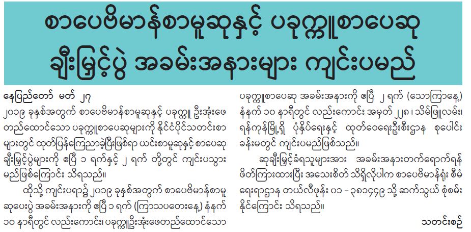 ဦးစီးဌာနနှင့် လုပ်ငန်းများ၏ ကြေညာချက်များ