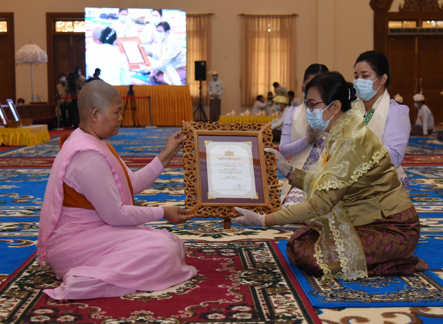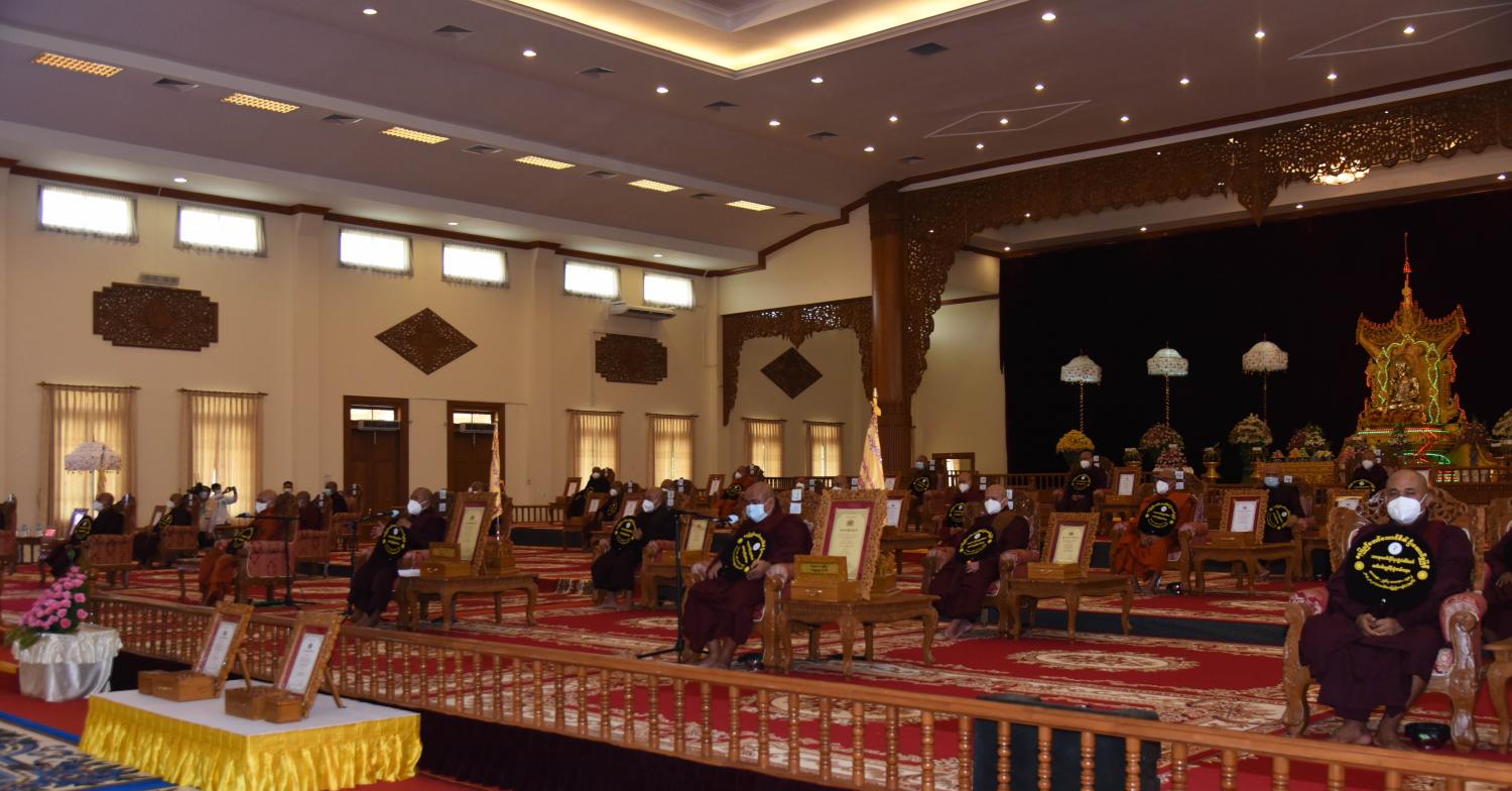 ယနေ့ကျင်းပသည့် နေပြည်တော်ကောင်စီနယ်မြေမှ ၂၀၂၁ ခုနှစ် သာသနာတော် ဆိုင်ရာ ဘွဲ့တံဆိပ်တော် ဆက်ကပ် ပူဇော်ပွဲ အခမ်းအနားတွင် အဂ္ဂမဟာပဏ္ဍိတ ဘွဲ့တံဆိပ် တော်ရ ဆရာတော် (၂)ပါး၊ အဂ္ဂမဟာသဒ္ဓမ္မဇောတိကဓဇ ဘွဲ့တံဆိပ်တော်ရ ဆရာတော် (၂)၊ အဂ္ဂမဟာ ဂန္ထဝါစကပဏ္ဍိတ ဘွဲ့တံဆိပ်တော်ရဆရာတော် (၃)ပါး၊ မဟာဂန္ထဝါစကပဏ္ဍိတ ဘွဲ့တံဆိပ် တော်ရဆရာတော် (၄)ပါး၊ မဟာသဒ္ဓမ္မဇောတိကဓဇ ဘွဲ့တံဆိပ်တော်ရ ဆရာတော် (၄)ပါး၊ မဟာကမ္မဋ္ဌာနာစရိယ ဘွဲ့တံဆိပ်တော်ရ ဆရာတော် (၁)ပါး၊ ဓမ္မကထိက ဗဟုဇနဟိတဓရ ဘွဲ့တံဆိပ်တော်ရ ဆရာတော် (၁) ပါး၊ ဂန္ထဝါစက ပဏ္ဍိတ ဘွဲ့တံဆိပ်တော်ရ ဆရာတော် (၇) ပါး၊ သဒ္ဓမ္မဇောတိကဓဇ ဘွဲ့တံဆိပ်တော်ရ ဆရာတော် (၅) ပါး၊ ဂန္ထဝါစက ပဏ္ဍိတ ဘွဲ့တံဆိပ်တော်ရ သီလရှင်ဆရာကြီး (၂) ပါးနှင့် မဟာသဒ္ဓမ္မဇောတိဥဓဇ ဘွဲ့တံဆိပ်တော်ရ လူပုဂ္ဂိုလ်(၂) ဦး တို့အား သာသနာတော်ဆိုင်ရာ ဘွဲ့တံဆိပ်များကို ဆက်ကပ်ပူဇော် ပေးအပ်ခဲ့ကြောင်း သိရသည်။